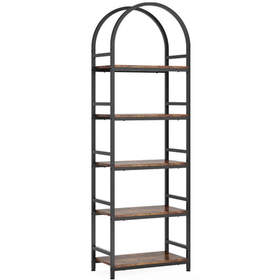 Tribesigns 5-Tier Bookshelf Arched Bookcase Display Rack w Storage Shelves Brown