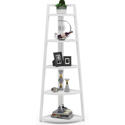 Tribesigns 5-Tier Corner Shelves 70" Tall Corner Ladder Shelf Bookshelf White