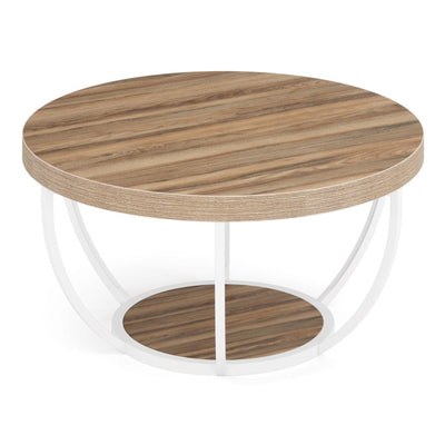 Tribesigns 32" Wooden Coffee Table 2-Tier Round Cocktail Table w Shelf Tan/White