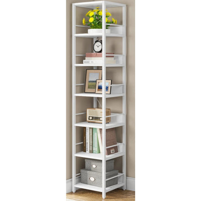 Tribesigns 6-Tier Corner Shelf Tall& Narrow Etagere Bookshelf Storage Rack White