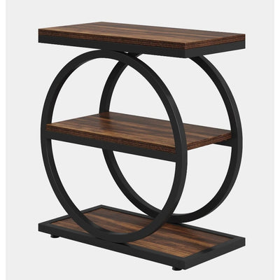 Tribesigns 3-Tier End Table Industrial Sofa Side Table Round Metal Frame Rustic
