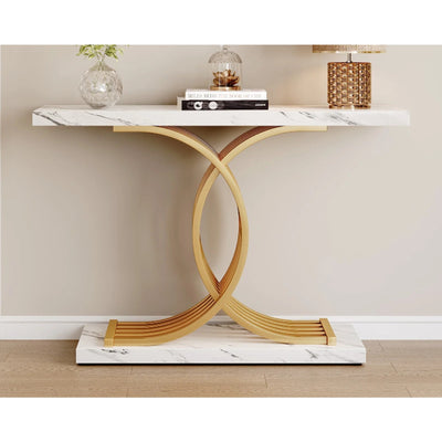 Tribesigns 39" White Faux Marble Entryway Hallway Table Gold Frame Console Table