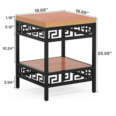 Tribesigns 2-Tier End Table Square Side Table with Storage Shelf Metal & Wood