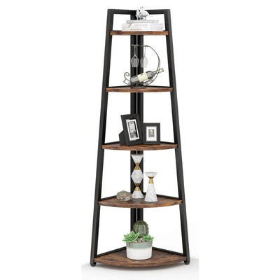 Tribesigns 5-Tier Corner Shelf 70" Corner Ladder Bookshelf Brown & Black