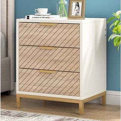 Tribesigns 3-Drawer Nightstand Bedside End Table for Bedroom - White & Tan
