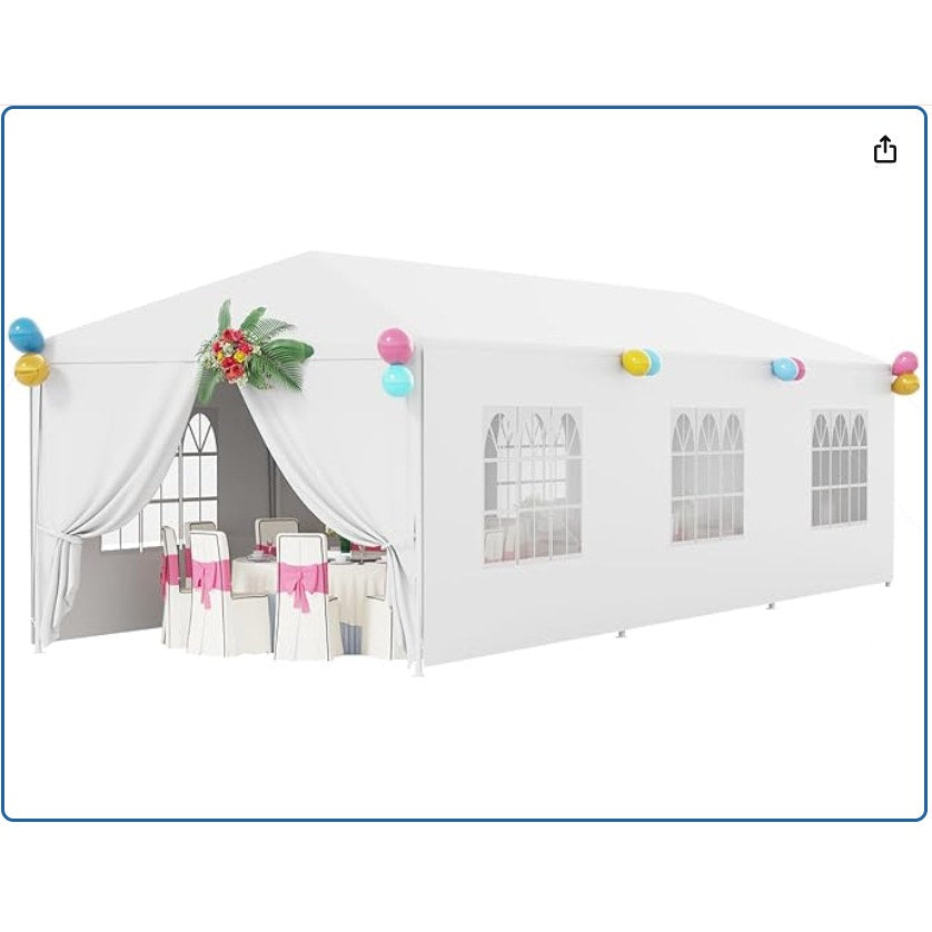 10' x 30' Outdoor White Waterproof Gazebo Canopy Tent w 8 Removable Sidewalls