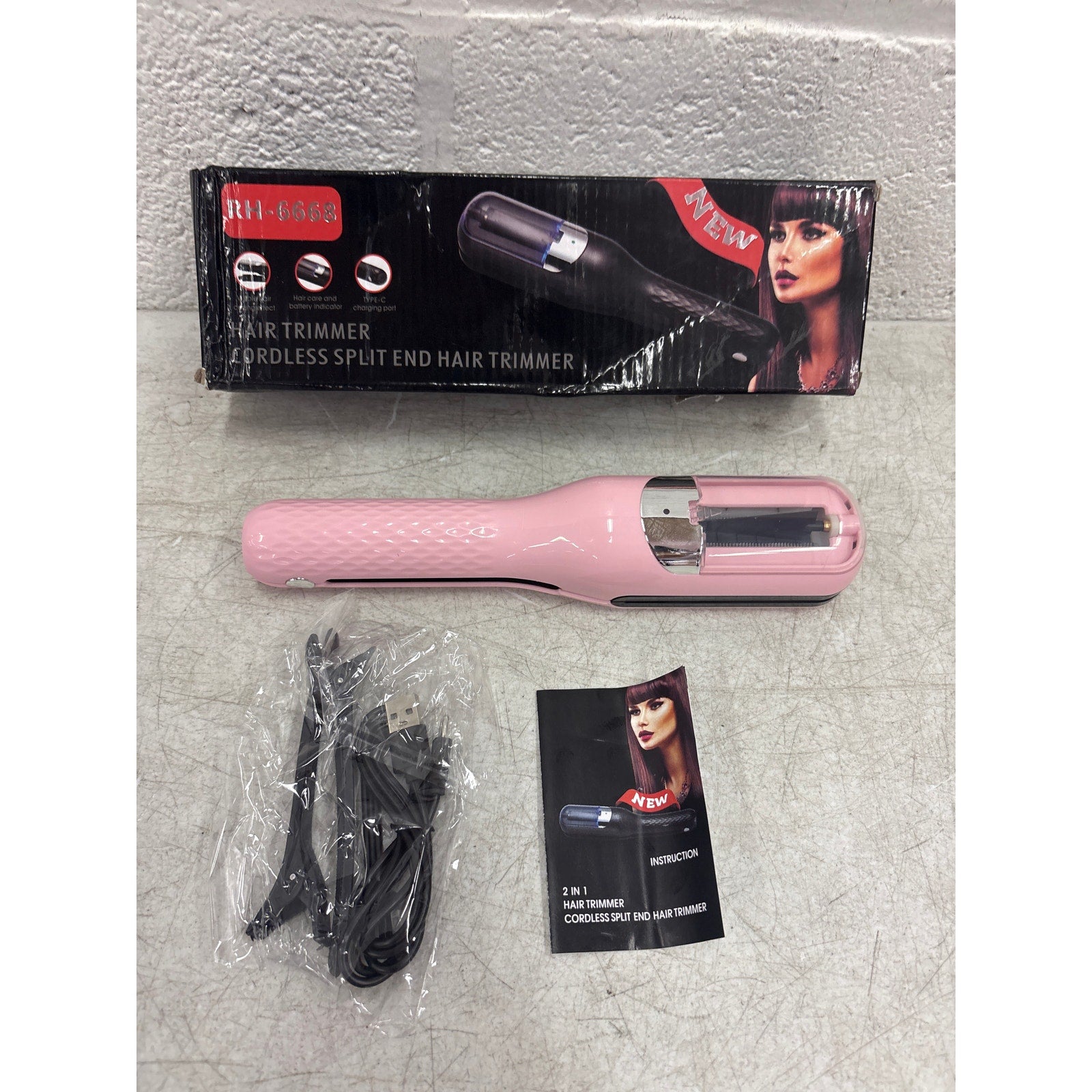 2-in-1 Women's Hair Clipper, Automatic Split End Remover, Rechargeable, Pink
