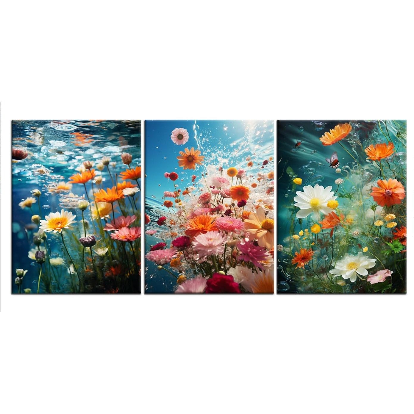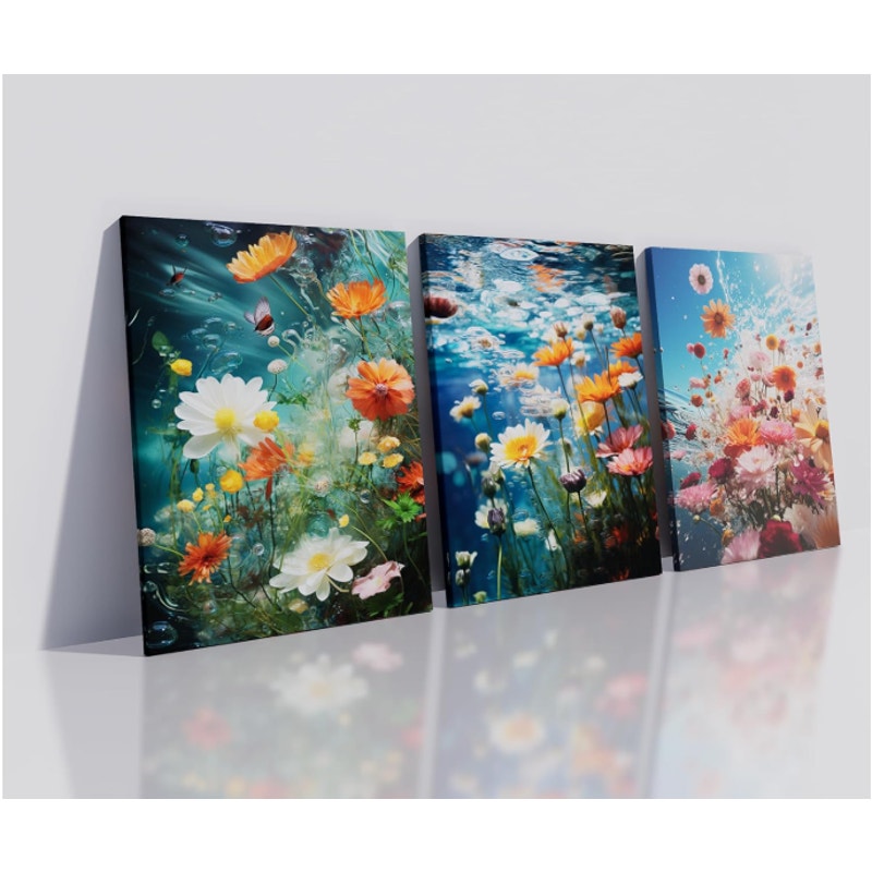 3-Piece Underwater Colorful Wildflower Wall Art Print 60"x28" Botanical Picture