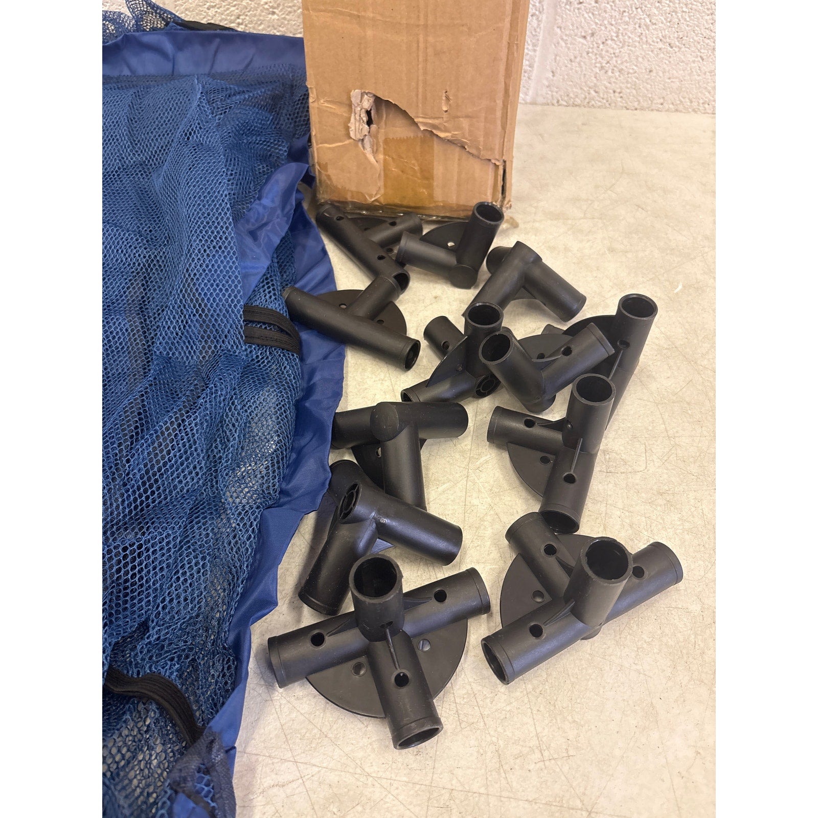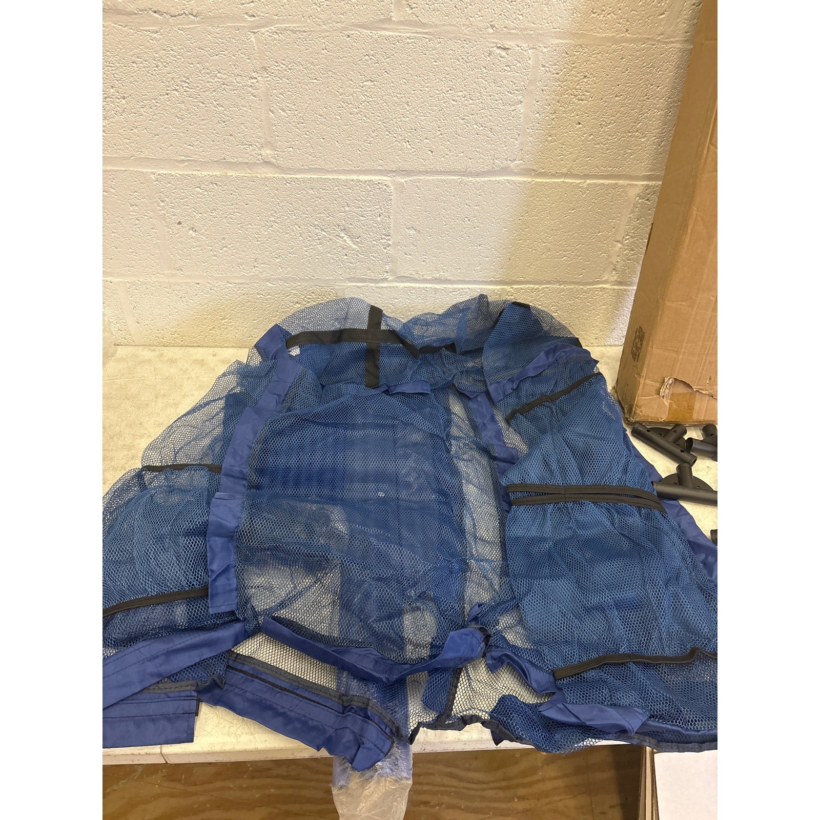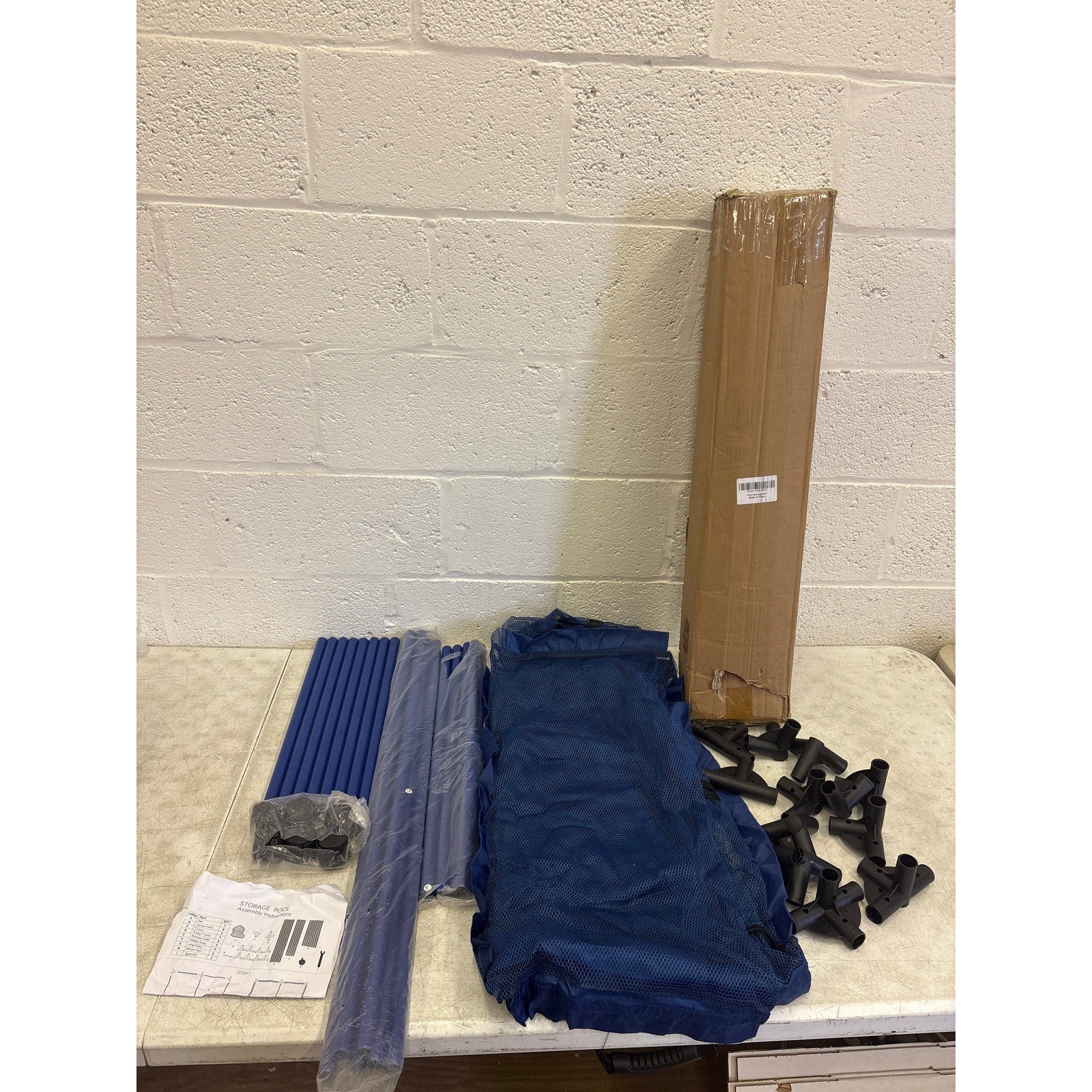 35"x33"x22" Mesh Pool Storage Bin Rolling Cart Organizer, Water Draining - Blue