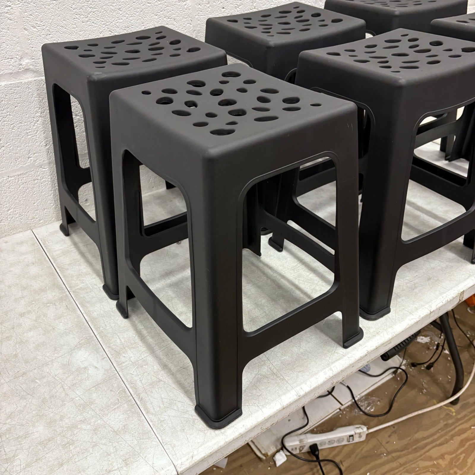 6-Pack Plastic Stools 16.9 Inch Black Nesting Stools Portable Backless, READ