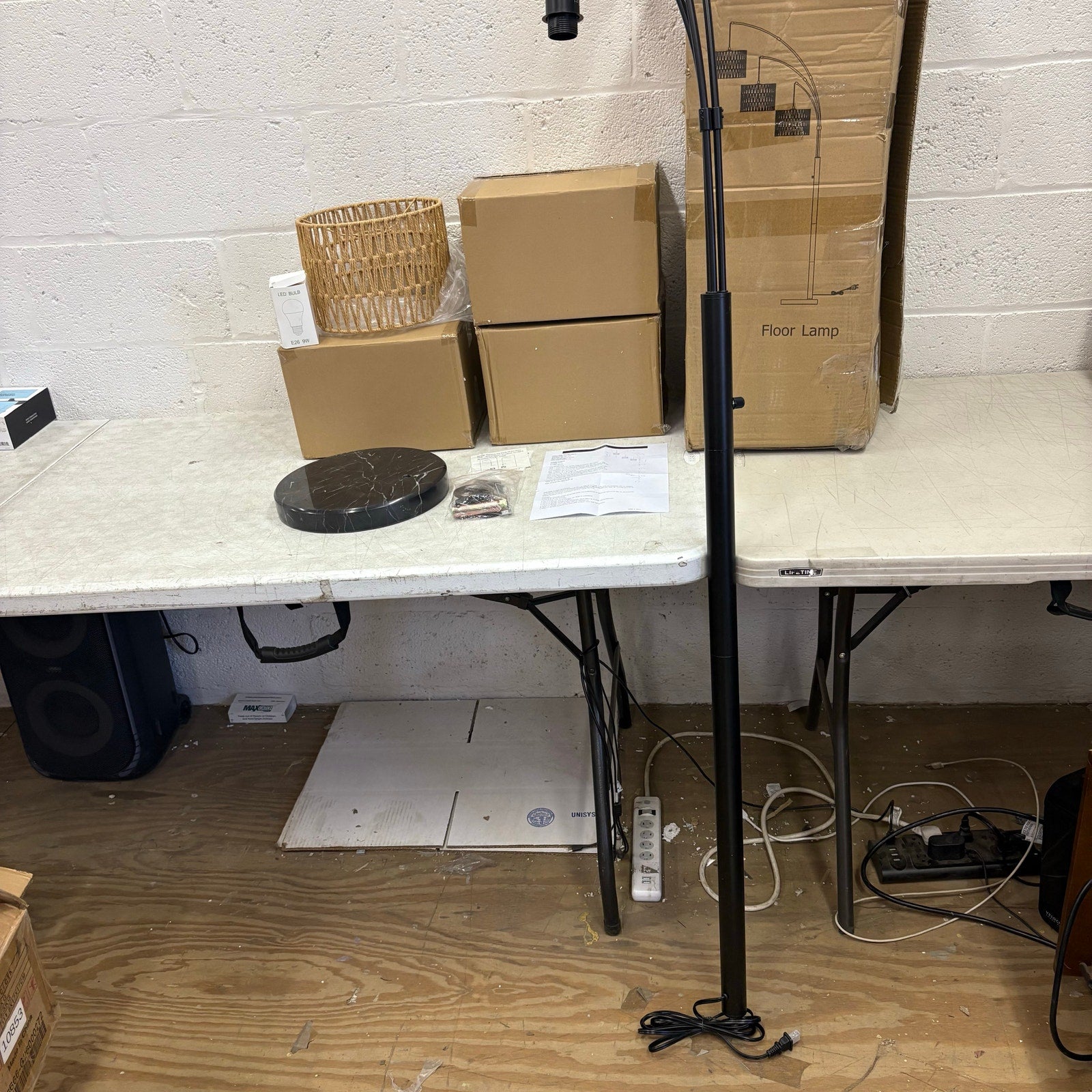 80" Floor Lamp Boho w Rotary Switch, 3 Lights Arc Lamp w Wicker Shade - Black