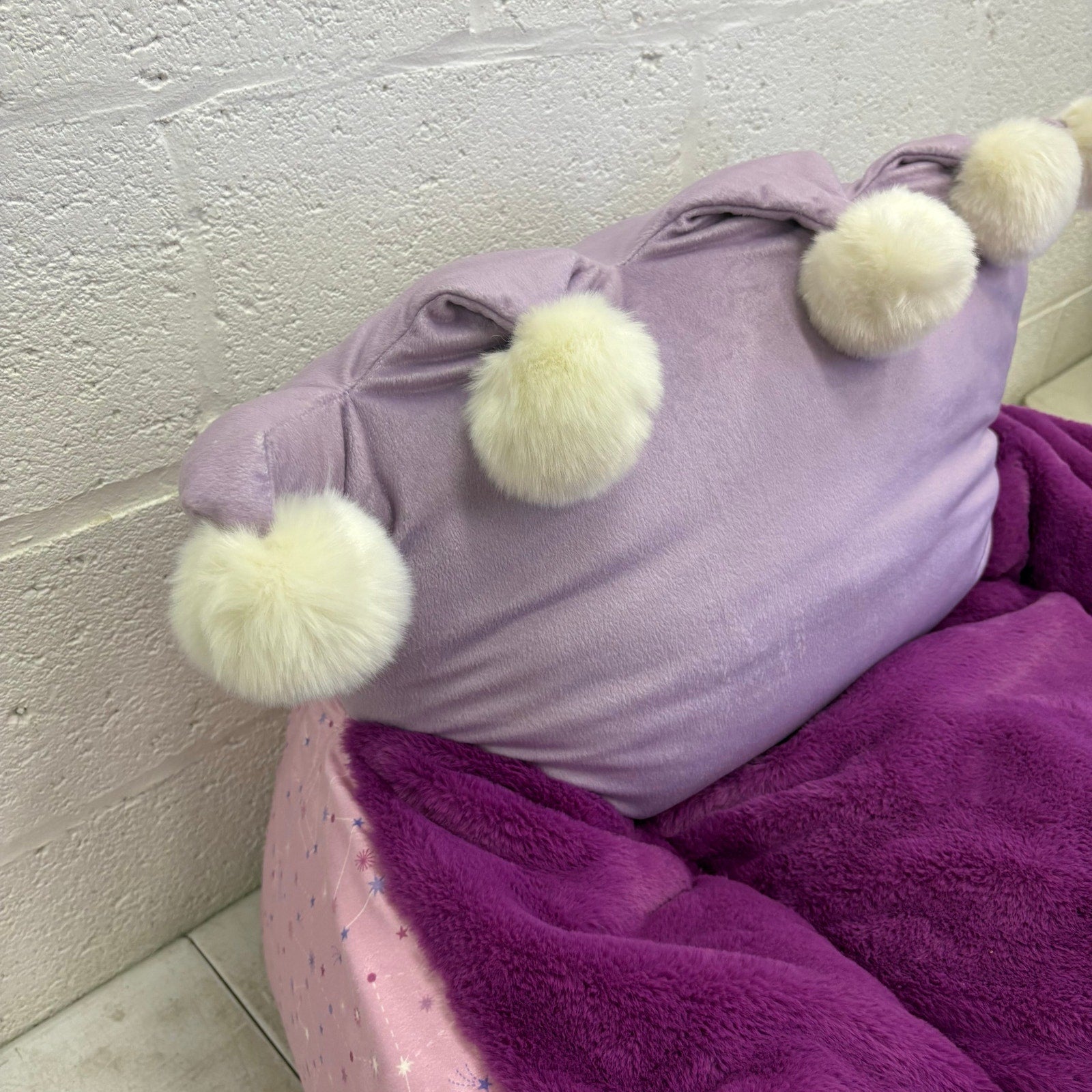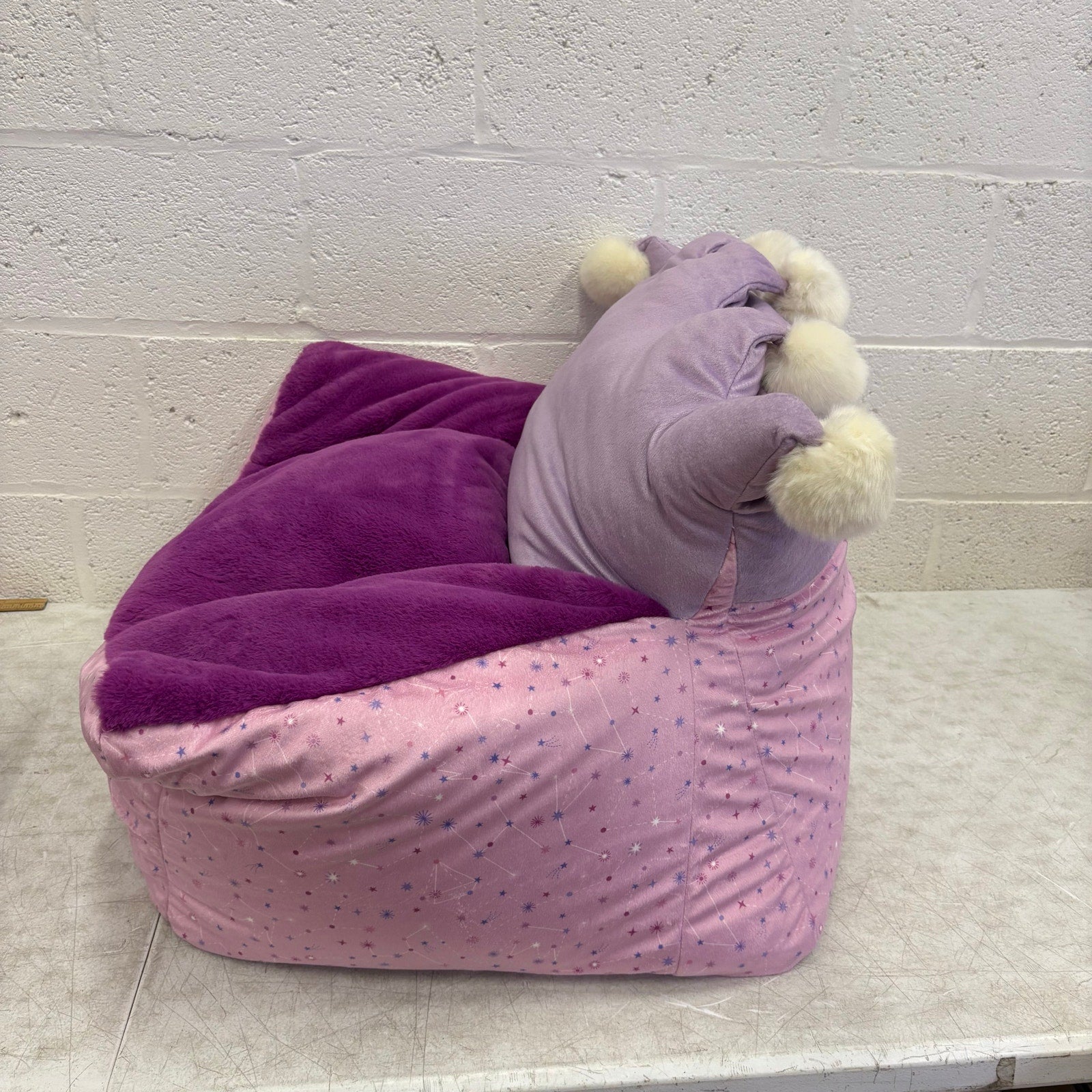 Bean Bag Chair Comfy Plush Kids Furniture, Pink & Purple Crown & Stars Design