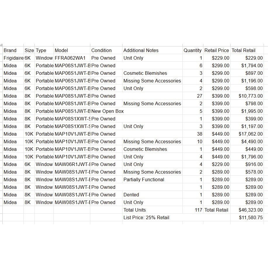 See full manifest in last photo