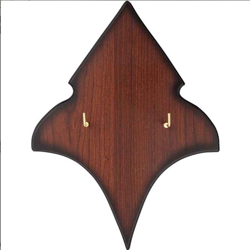 Made from stainless steel, this Artorias greatsword has a distinct dark fantasy design with a wooden display plaque. Stainless steel is renowned for its durability and rust resistance. The long, two-handed grip gives you a sturdy hold on this decorative sword. At the bottom, the pommel has multiple layers to the design. The end of the pommel is conical. This conical pommel rests on top of a thick, circular base. Below that base is a section with concave accents carved into it. The last part of the pommel has another circular base. The crossguard is short and curls slightly toward the blade. They also have intricately carved textures for added depth.