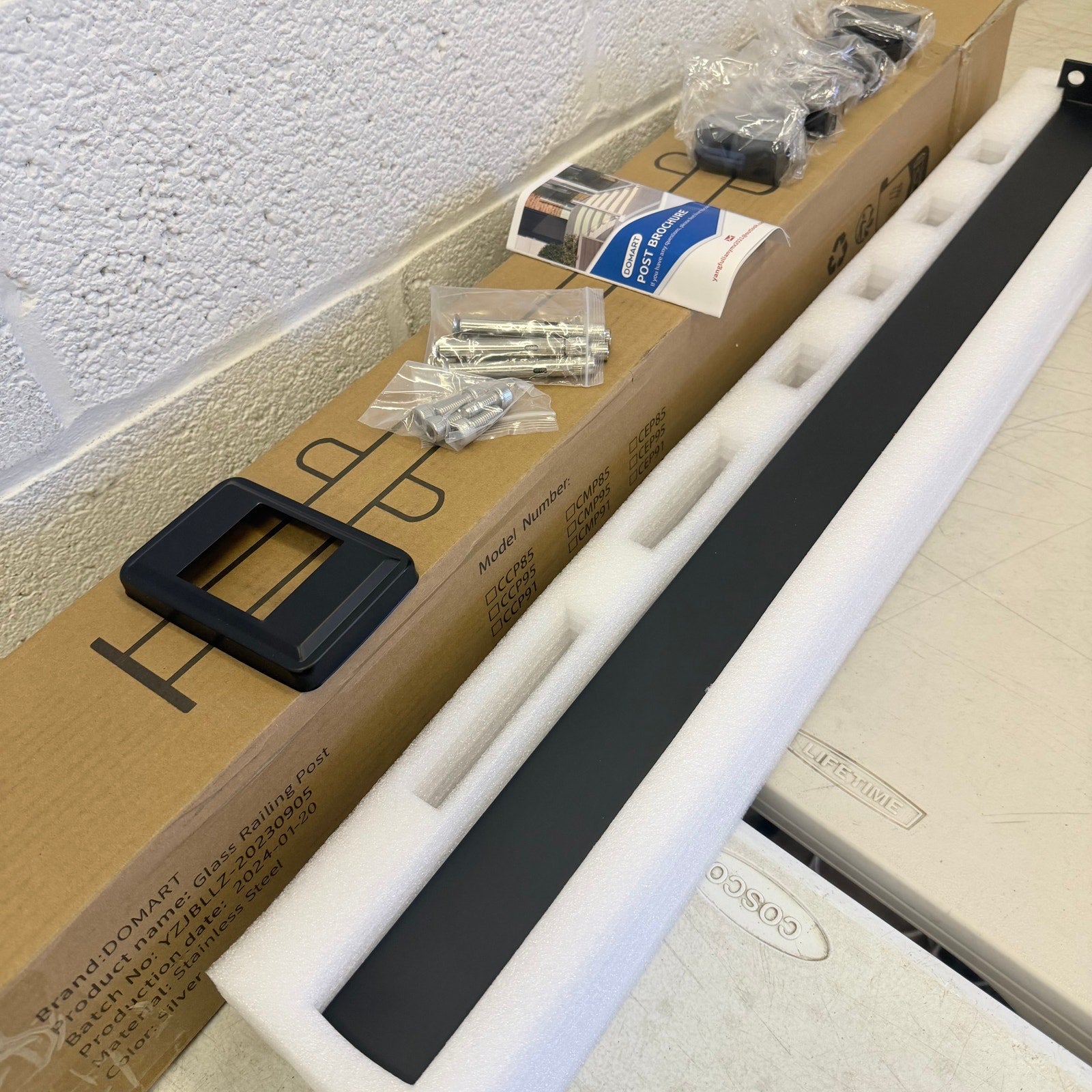 Domart Stainless Steel Square Glass Railing Post System with Clamp, 85cm, Black
