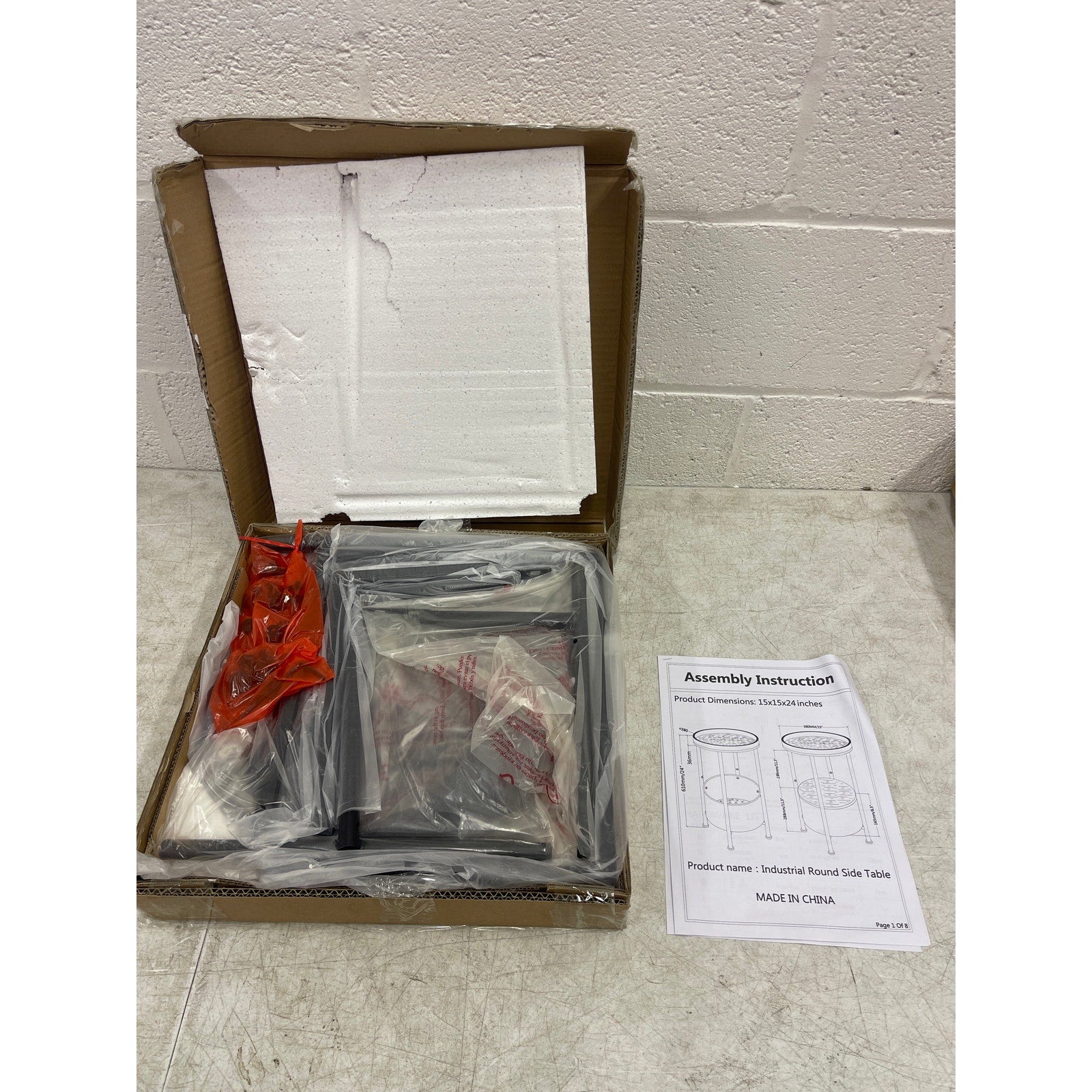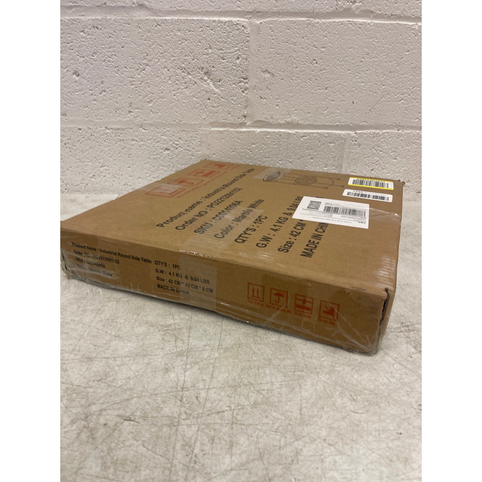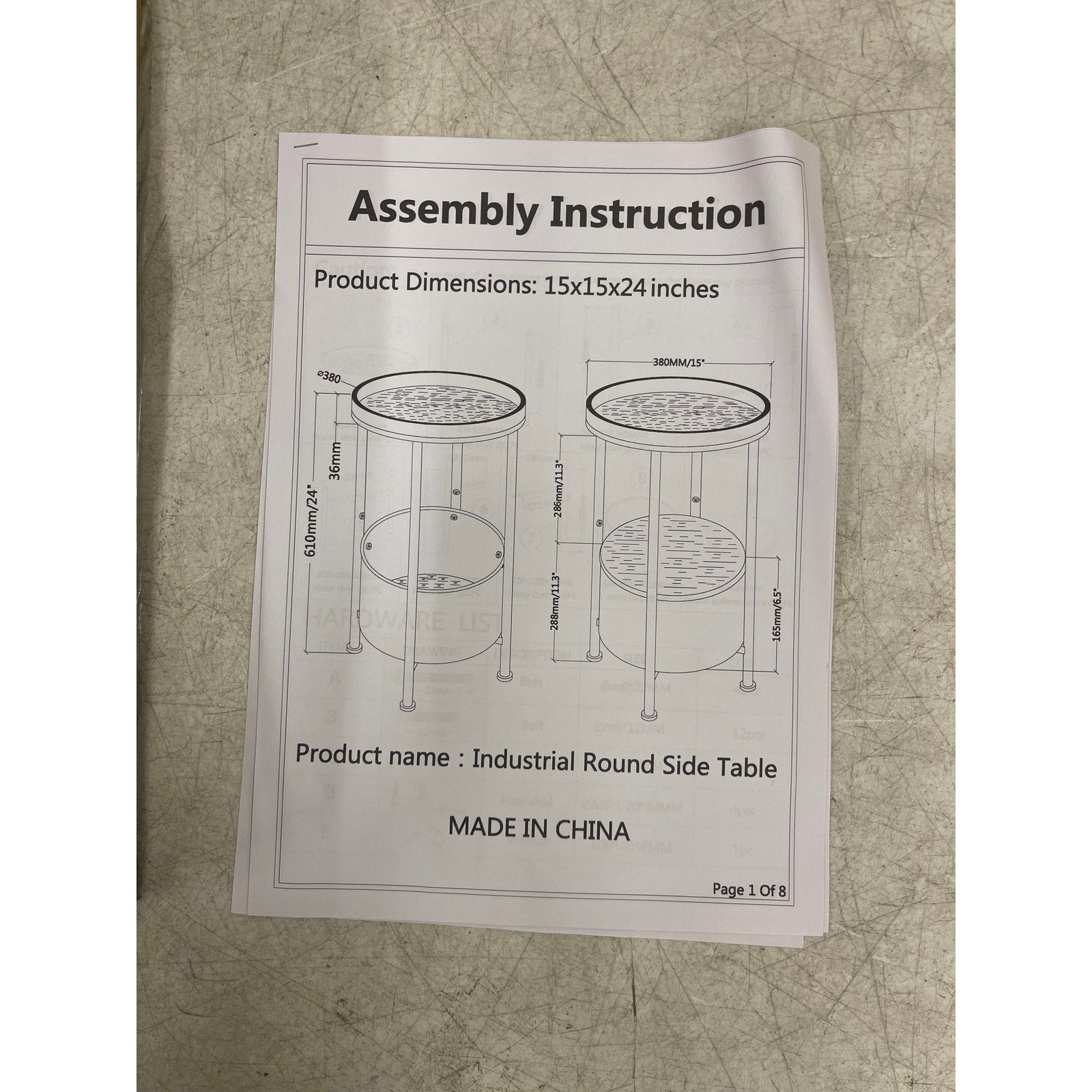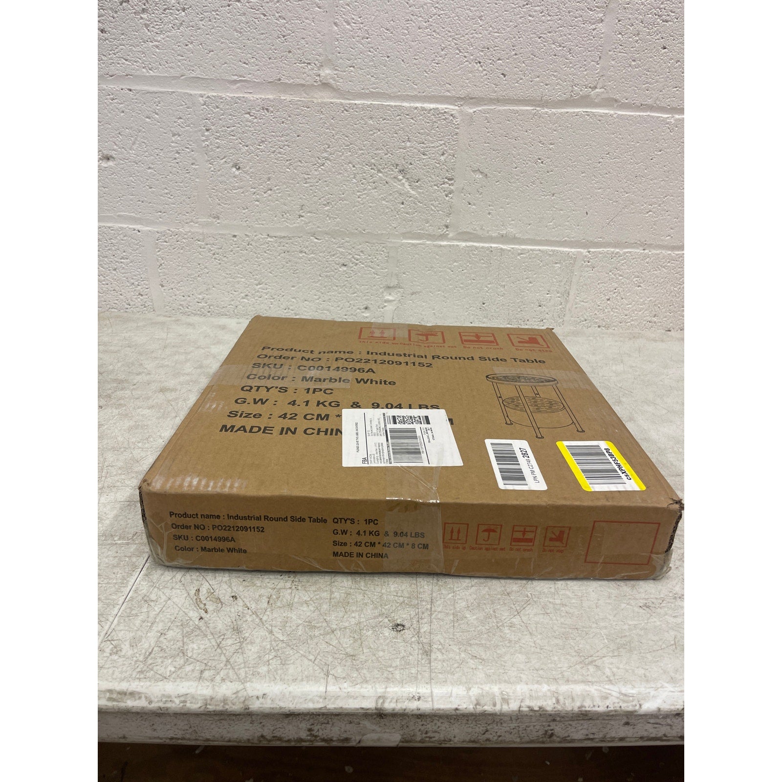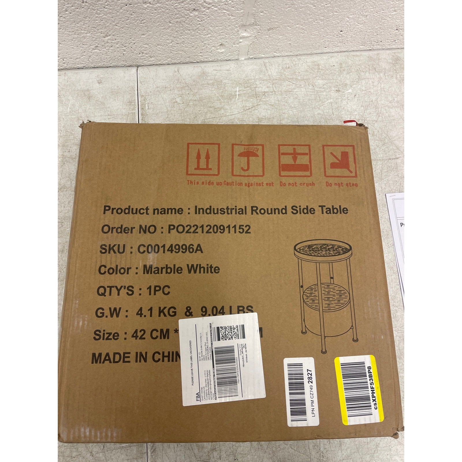 Industrial Round Side Table 15 x 15 x 24 Inches Marble 2 tier, White - Furniture