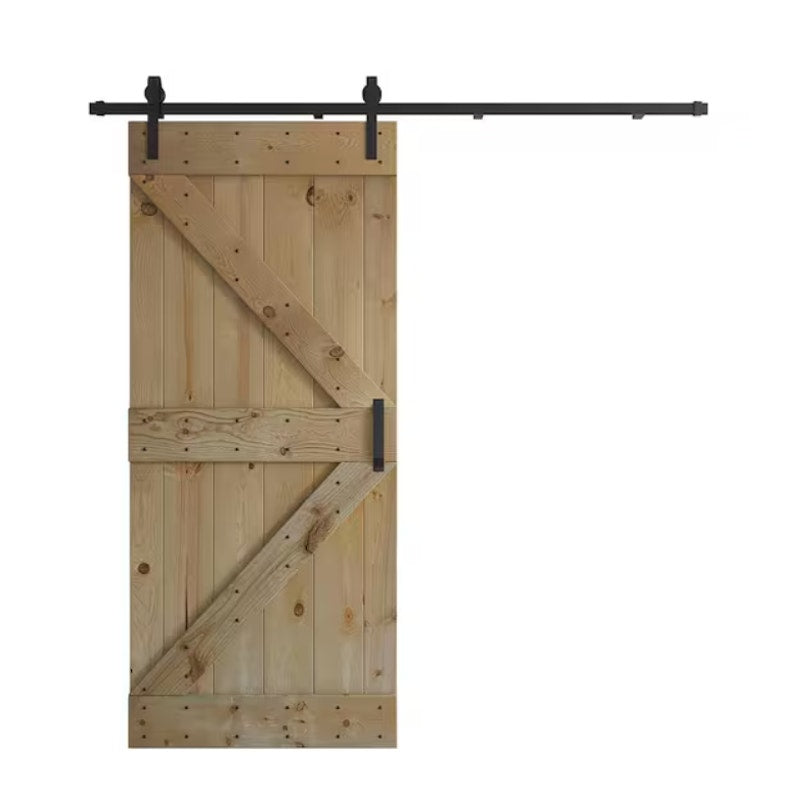 K-Style Sliding Barn Door & Hardware Kit, 36" x 84" Unfinished Knotty Pine Wood