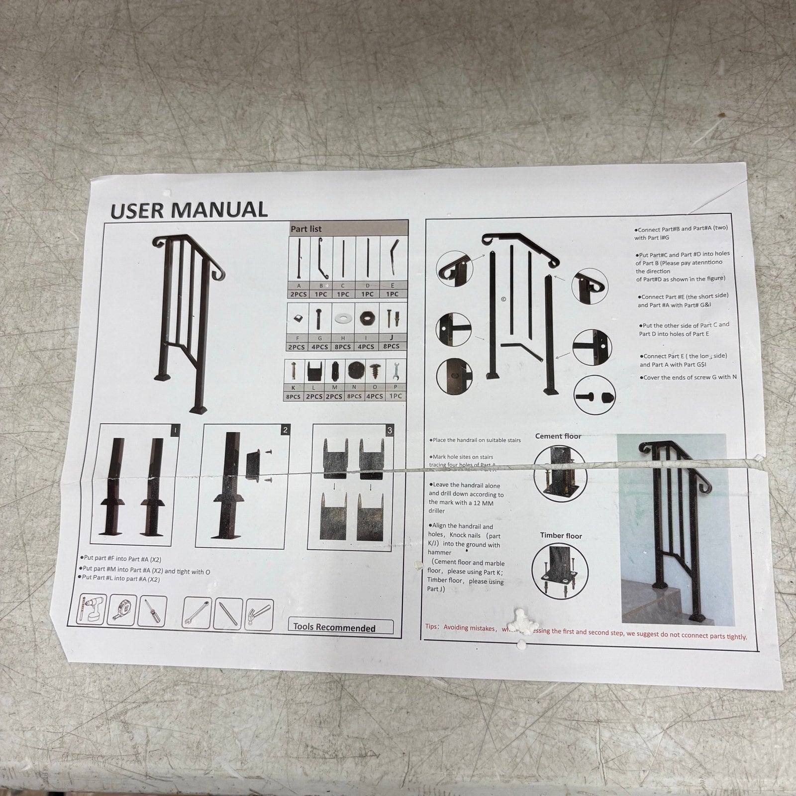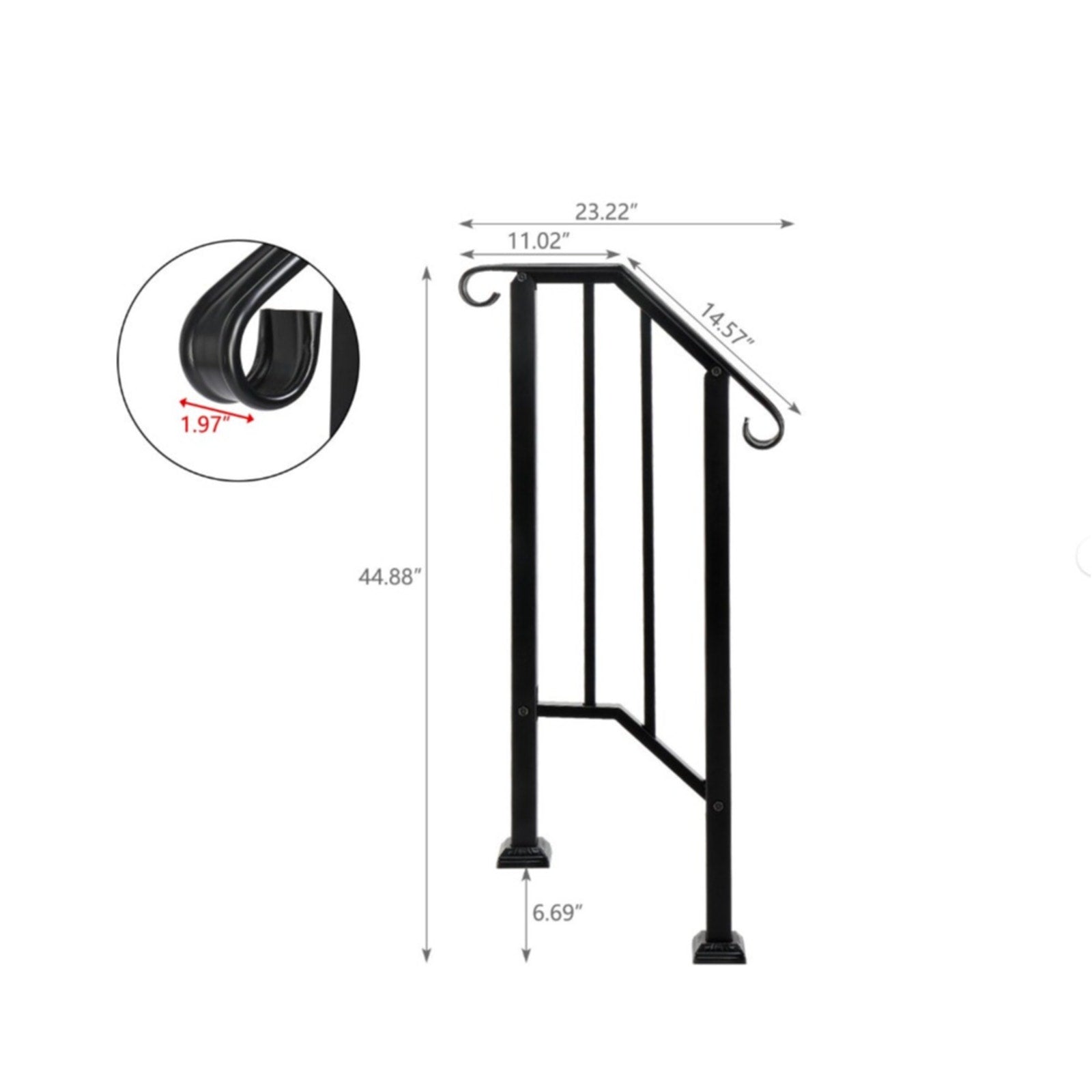 Karl home Transitional Handrail Stair Railing Fits 1-Step Iron Rail Kit, SEE DETAILS