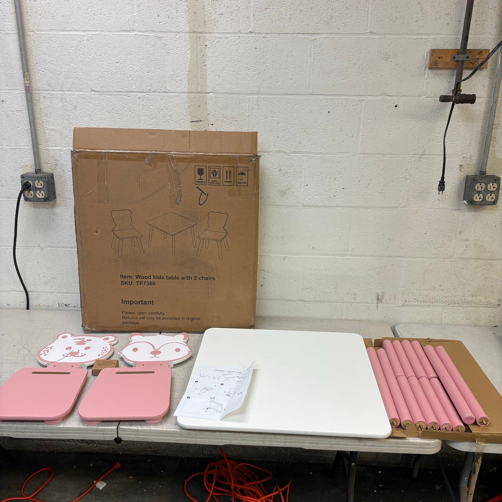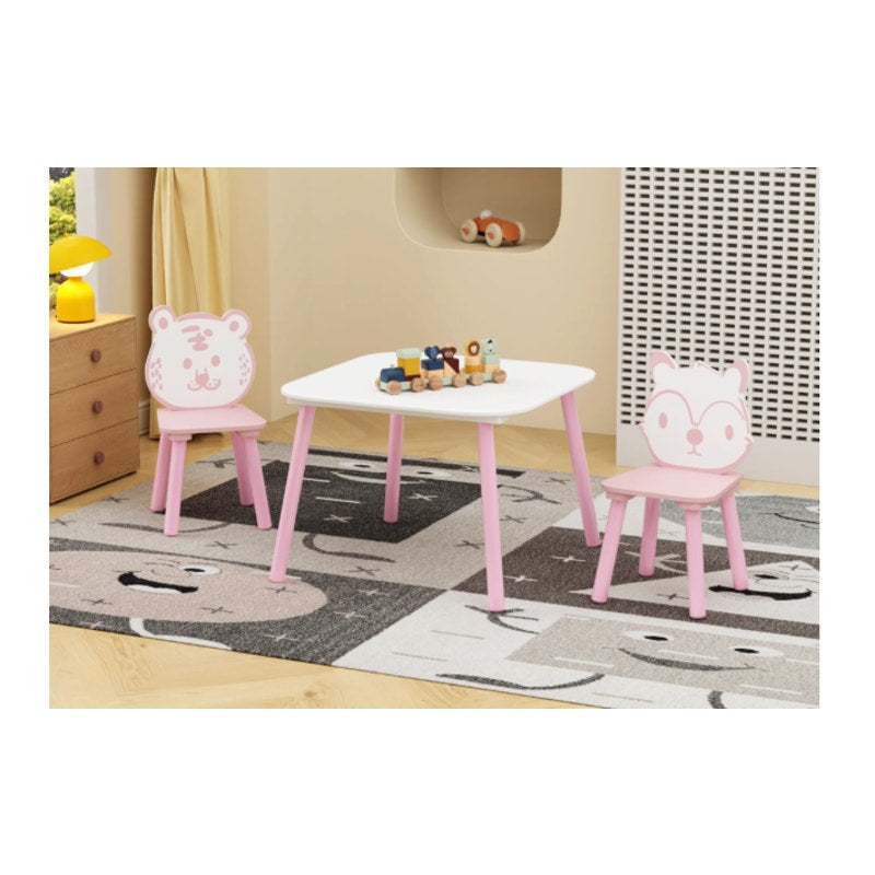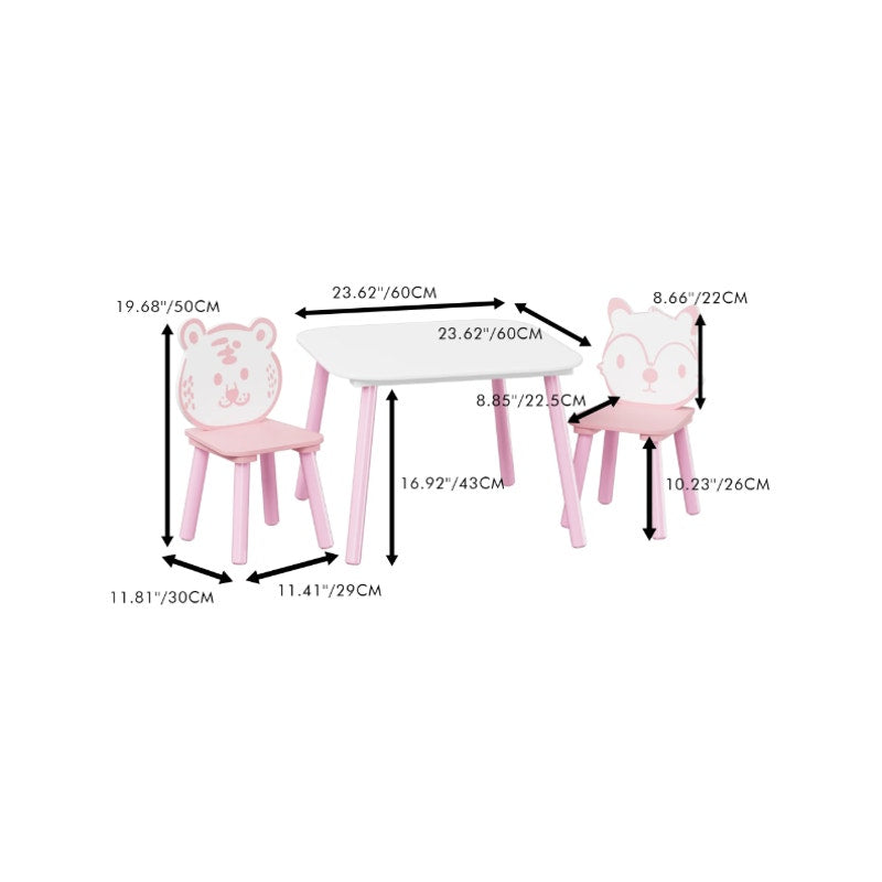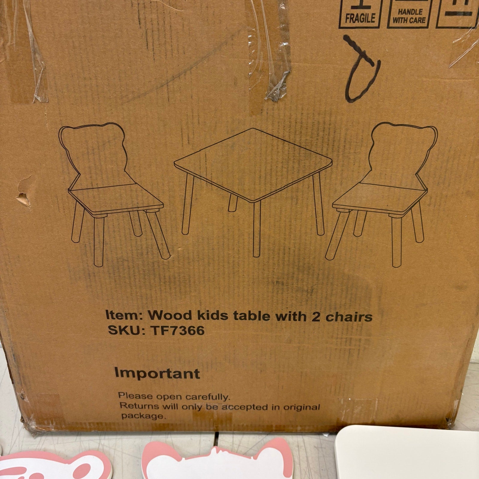Kids Table & Chairs Set, Wooden Cute Toddler Activity Table with Animal Chairs, DAMAGED