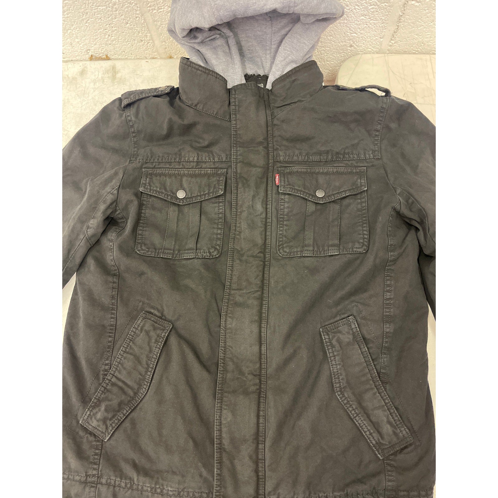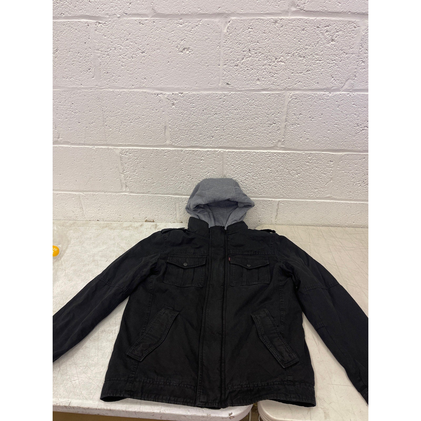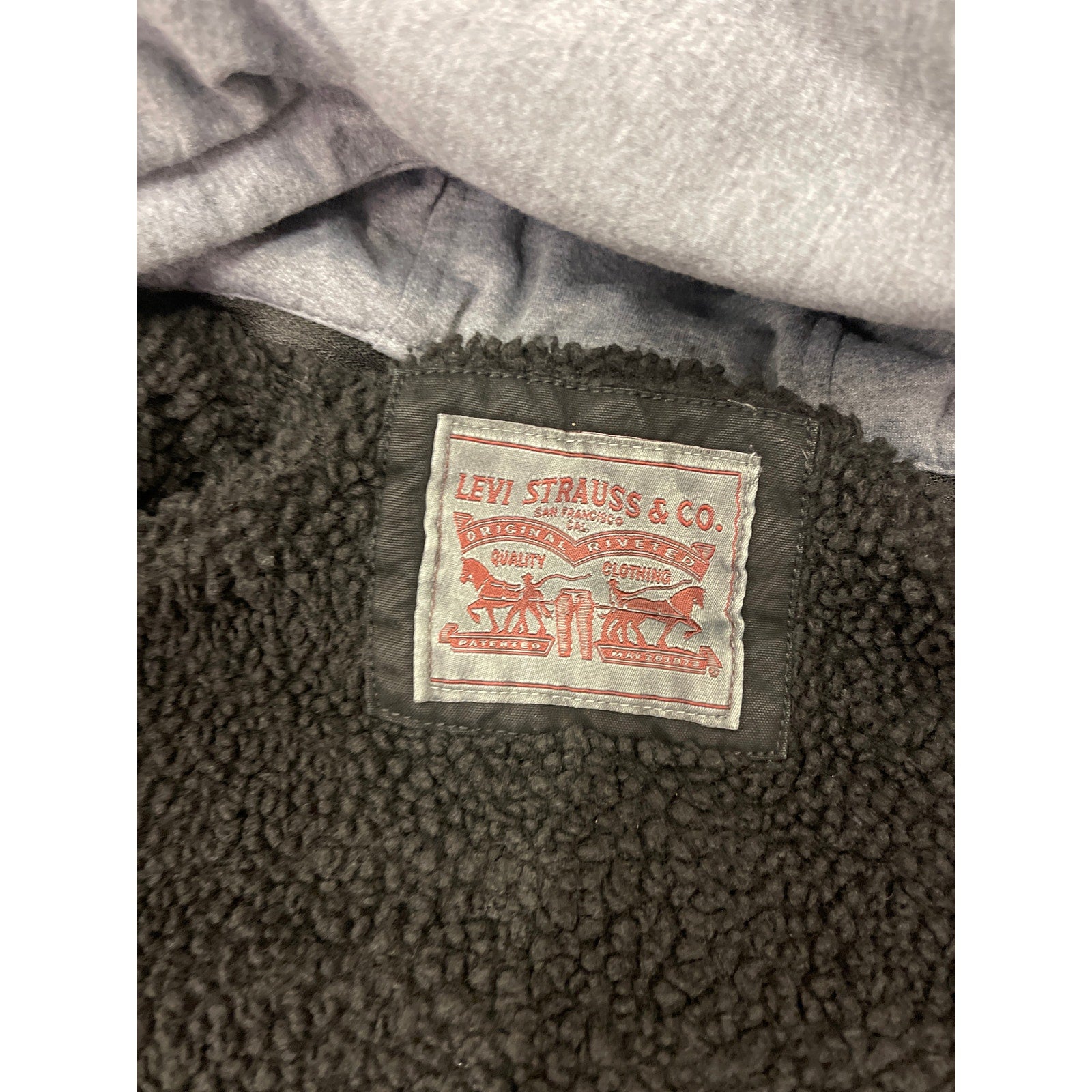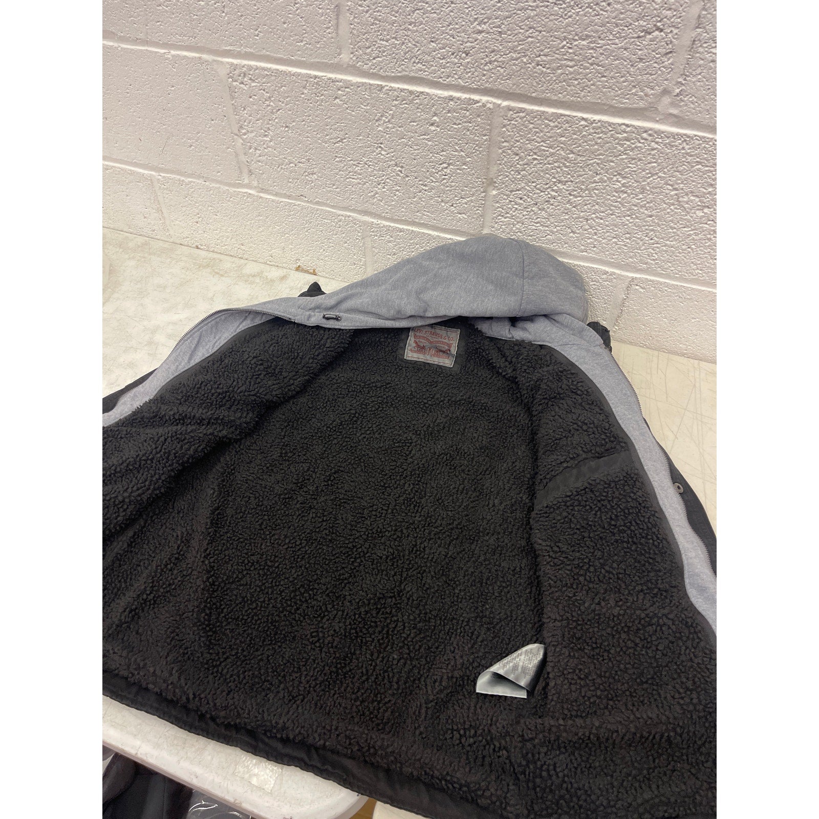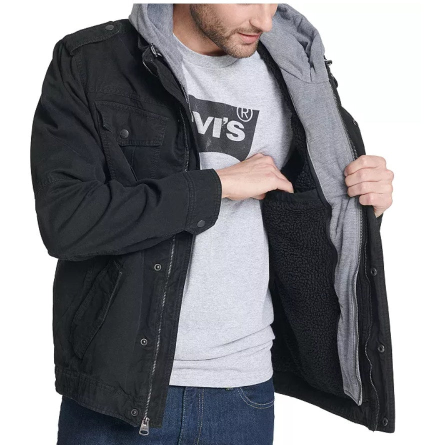 Men's Levi's Washed Cotton Sherpa-Lined Hooded Trucker Jacket Black - SMALL