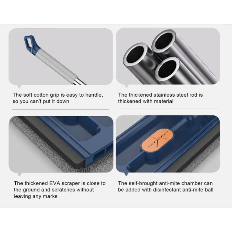 STAINLESS STEEL LONG HANDLE: The large flat mop features a sturdy stainless steel handle comprising 3 sections totaling 137 cm/53.94 inches in length. This long handle minimizes bending and squatting, reducing strain on your back and conserving energy during cleaning session. Crafted from robust stainless steel, the handle ensures durability and reliability for prolonged use, providing a comfortable grip for users of varying heights.