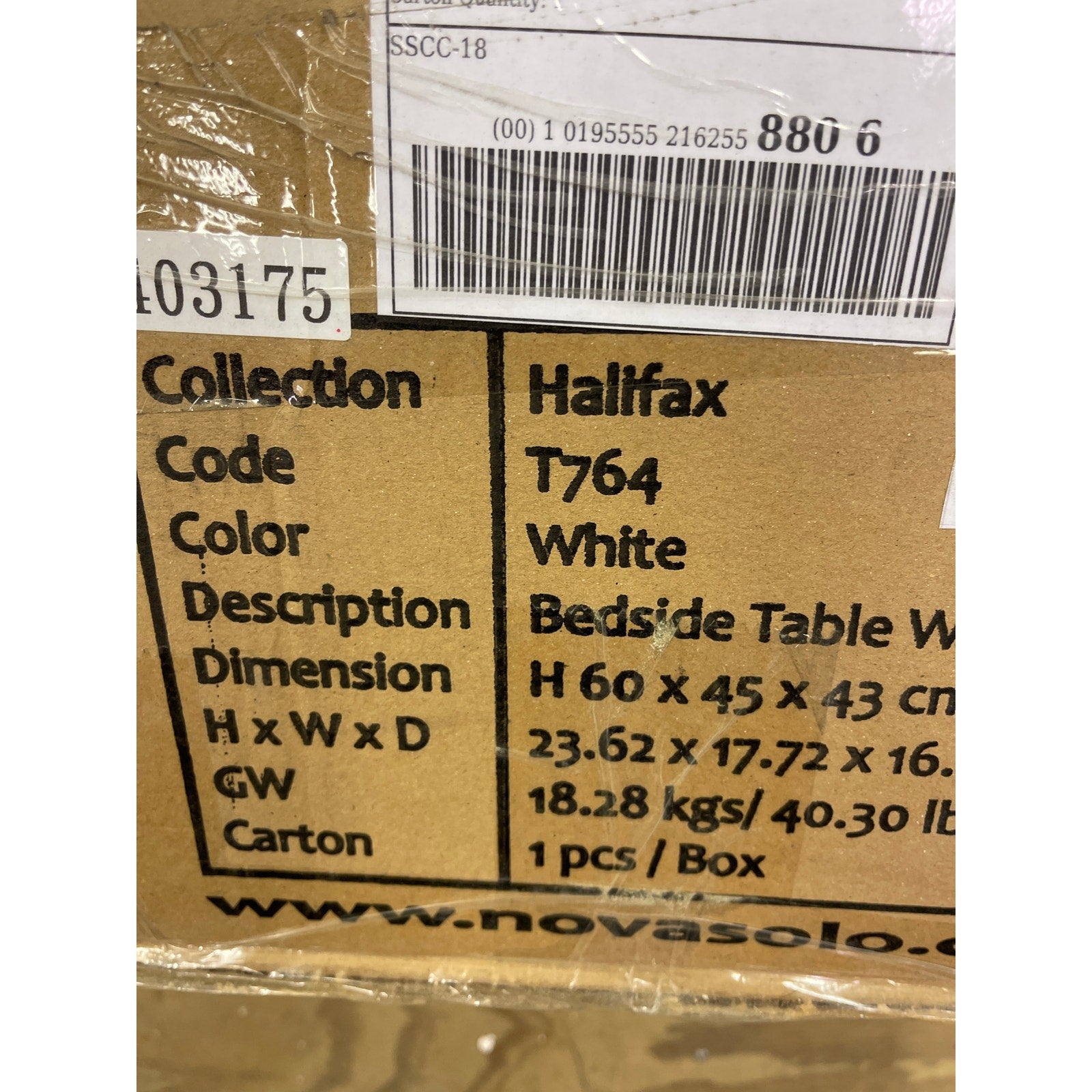 Novasolo Bedside Table w Shelves/ Drawer, Halifax Collection White 23 x 17 x 16"