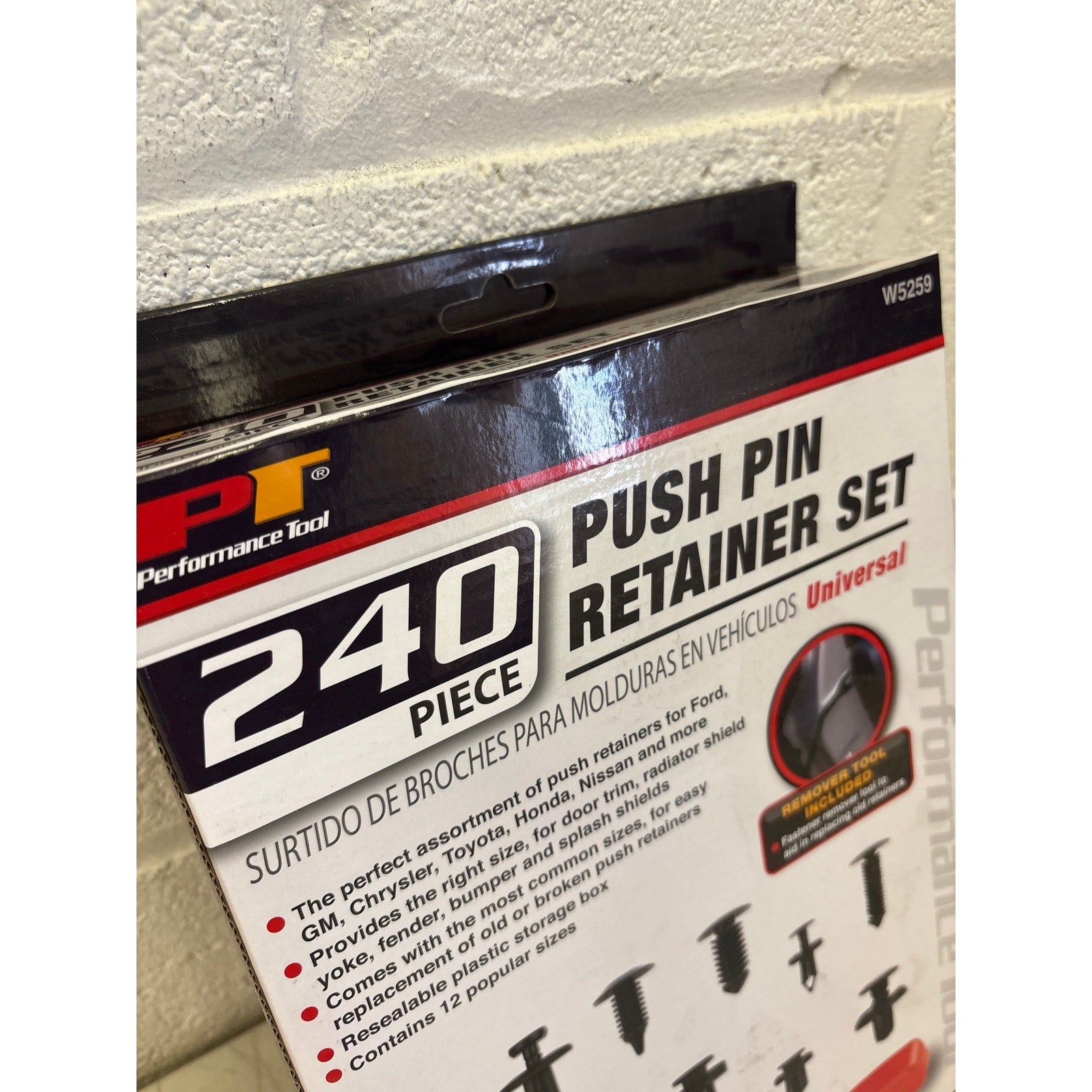 Performance Tool 240 Piece Push Pin Retainer Set Assortment, Remover Tool W5259