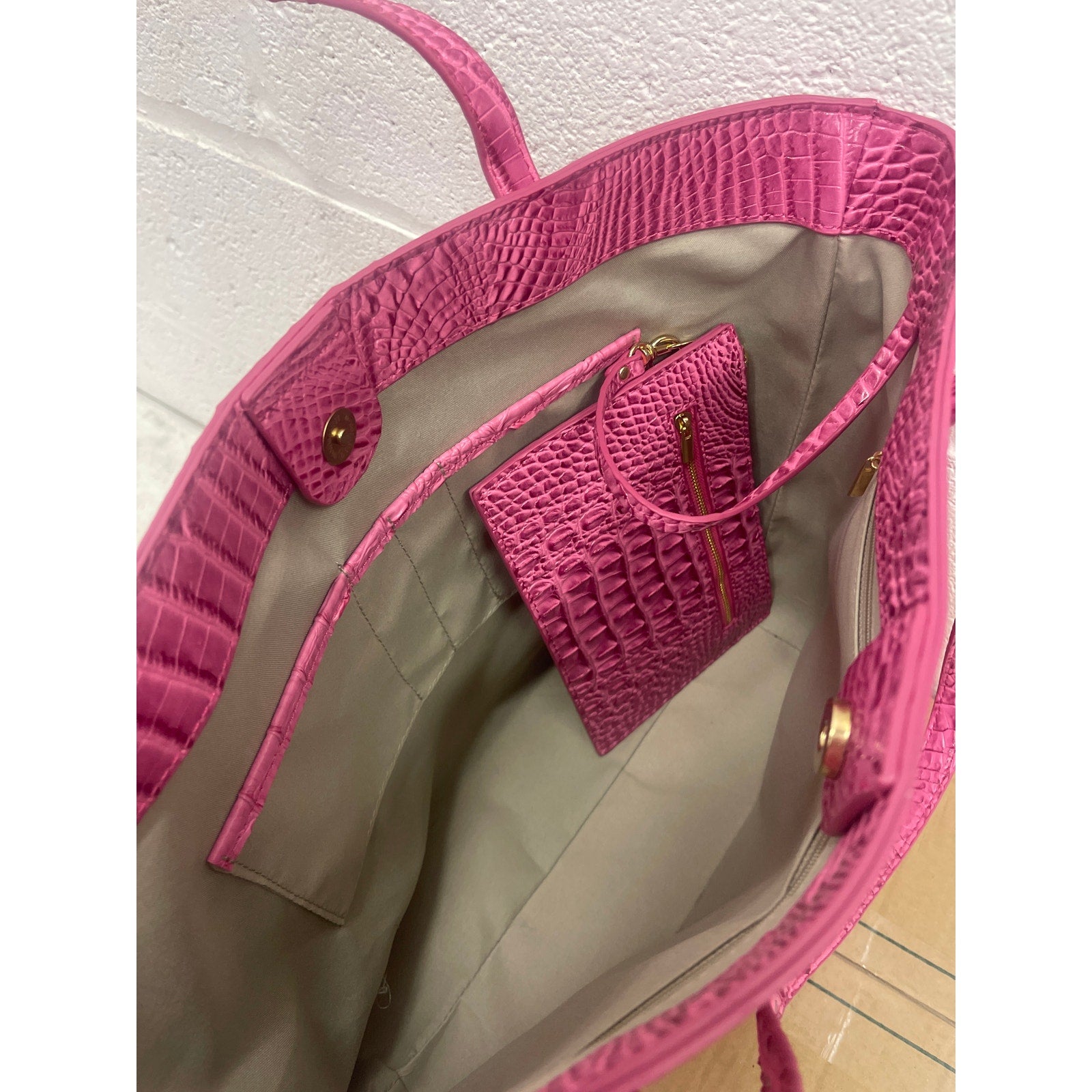 Pink Leather Tote Bag Leather Handbags for Women Top Handle with Purse - Pink