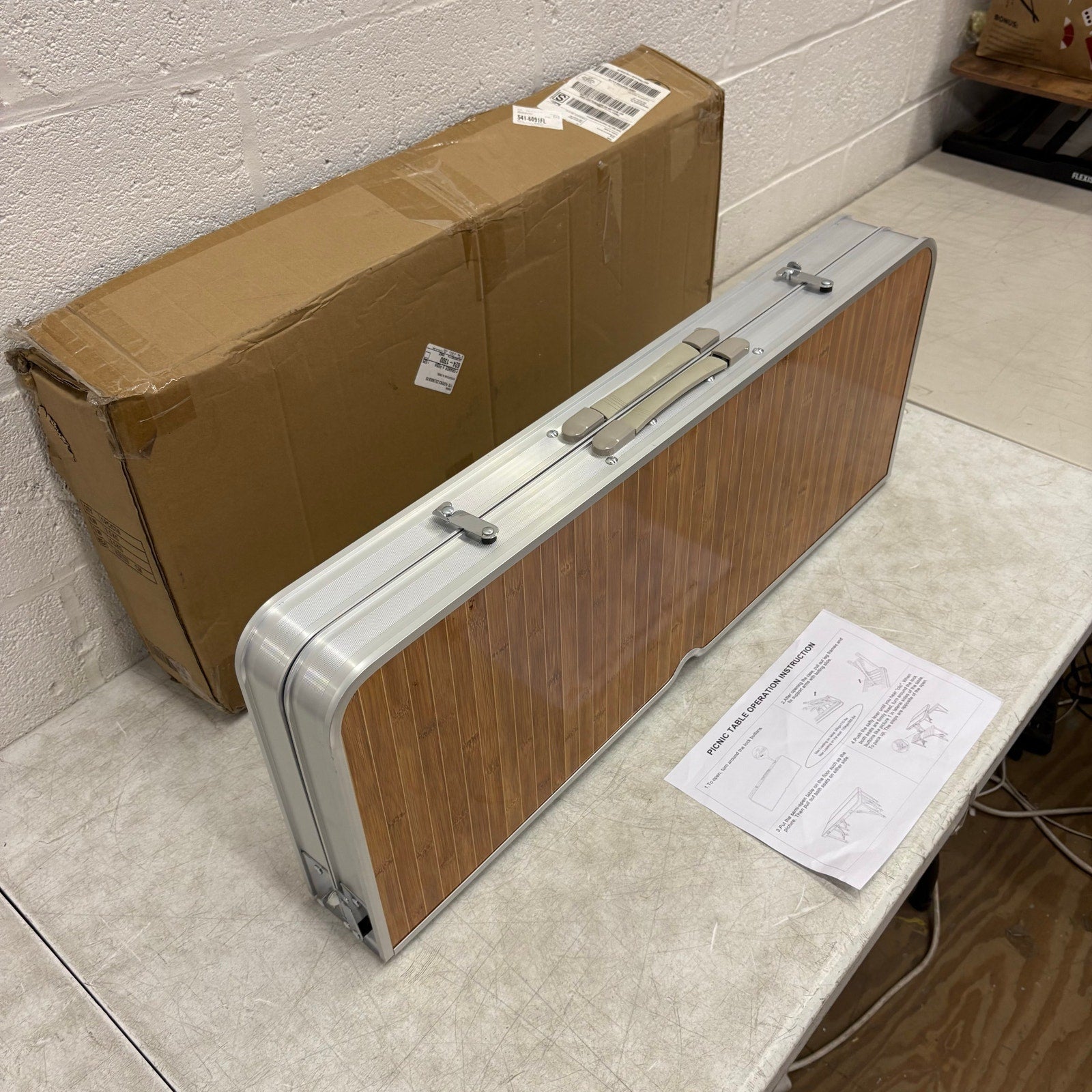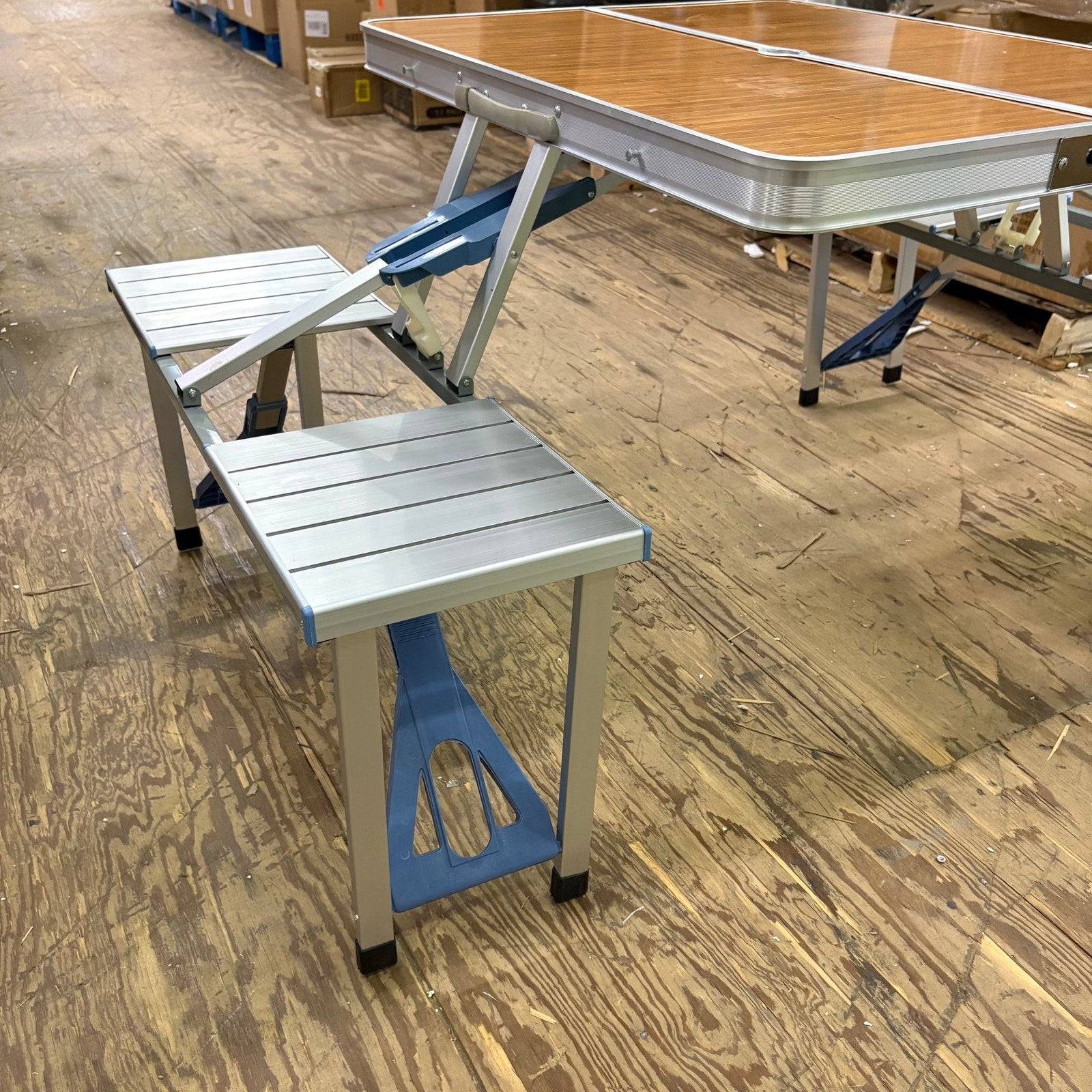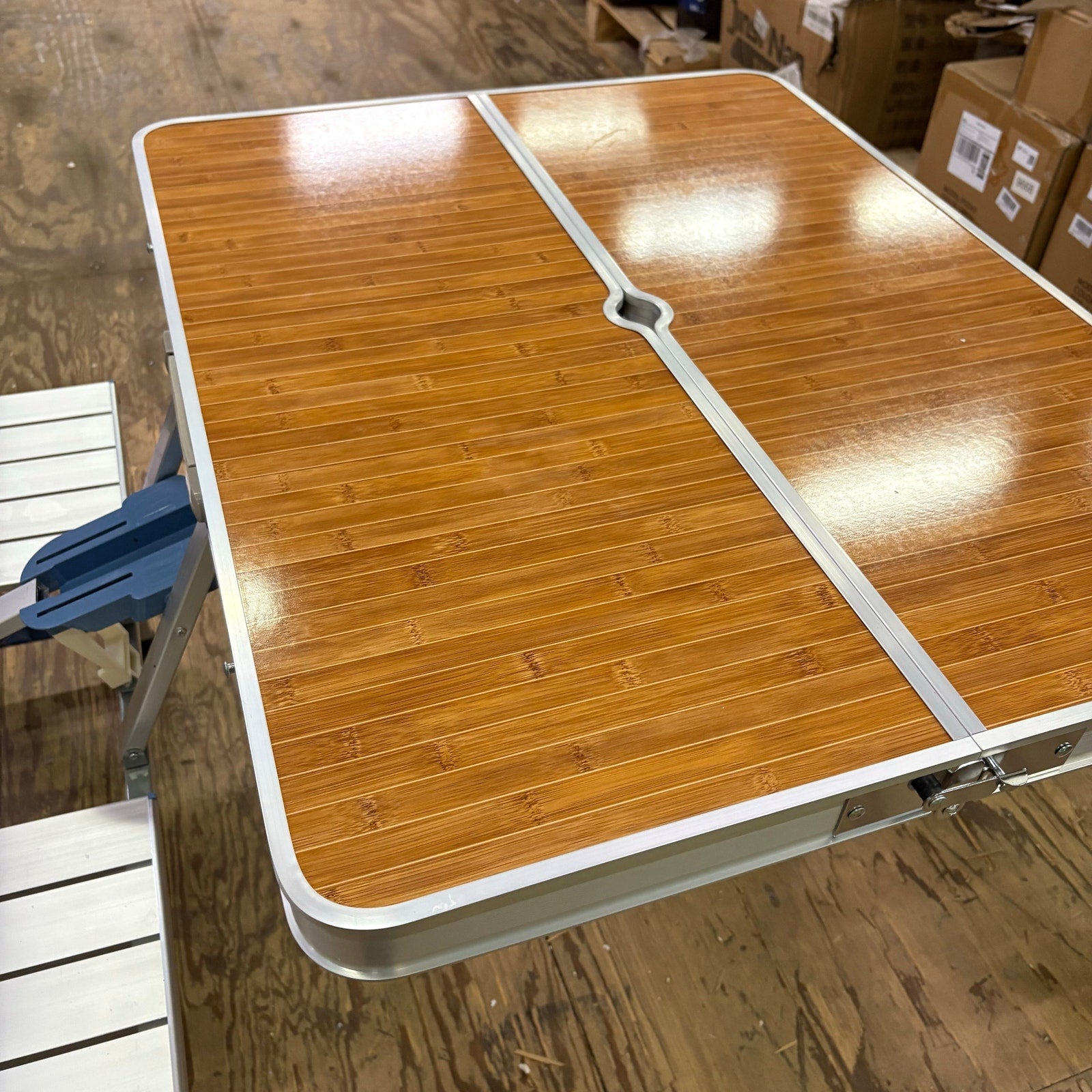 Portable Folding Picnic Table With 4-Person Chair Seats Wood Aluminum Alloy