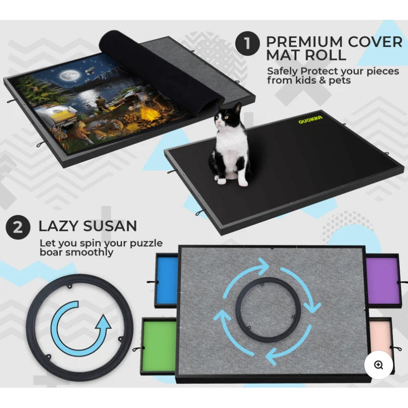 Quukka Jigsaw Puzzle Board with Drawers Adjustable Height Spinning Bottom Black