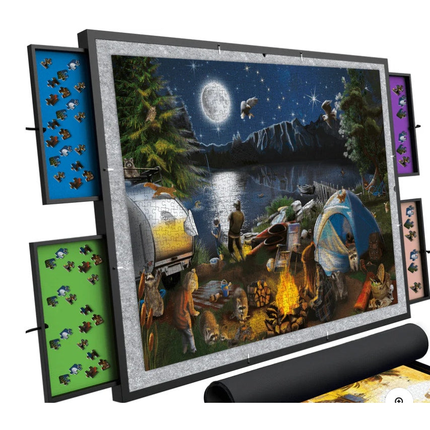 the puzzle board with four storage drawers is a game changer for puzzle enthusiasts. this cleverly designed board not only provides a stable and comfortable surface for assembling puzzles but also offers the convenience of four drawers. these drawers are great for sorting and safely storing