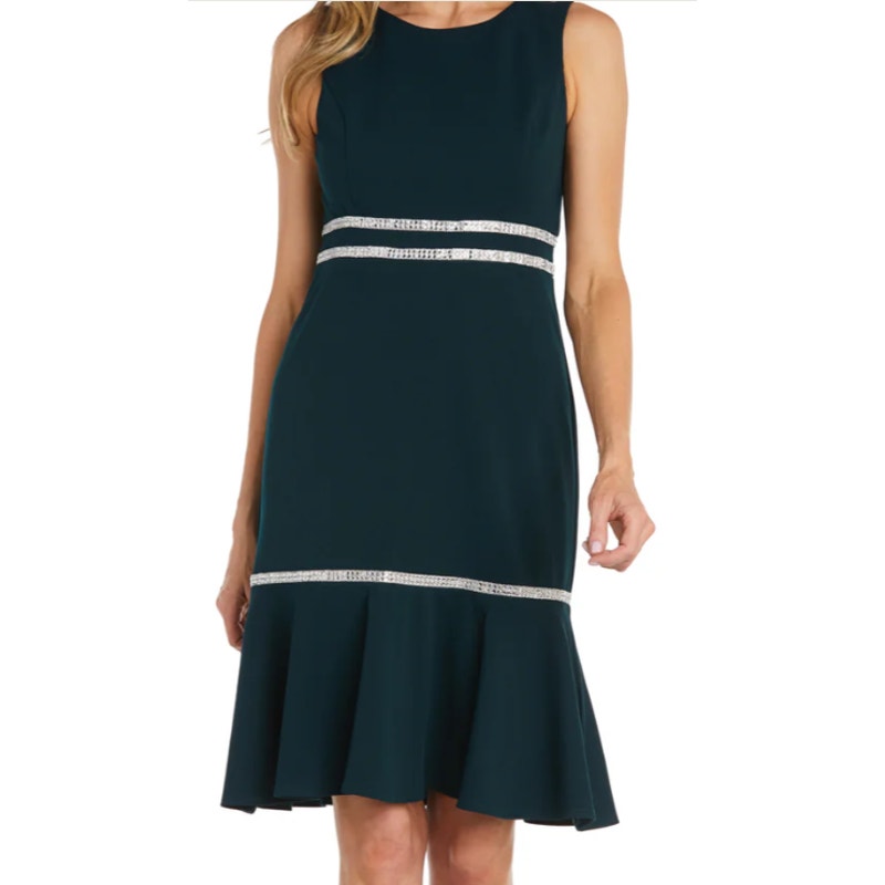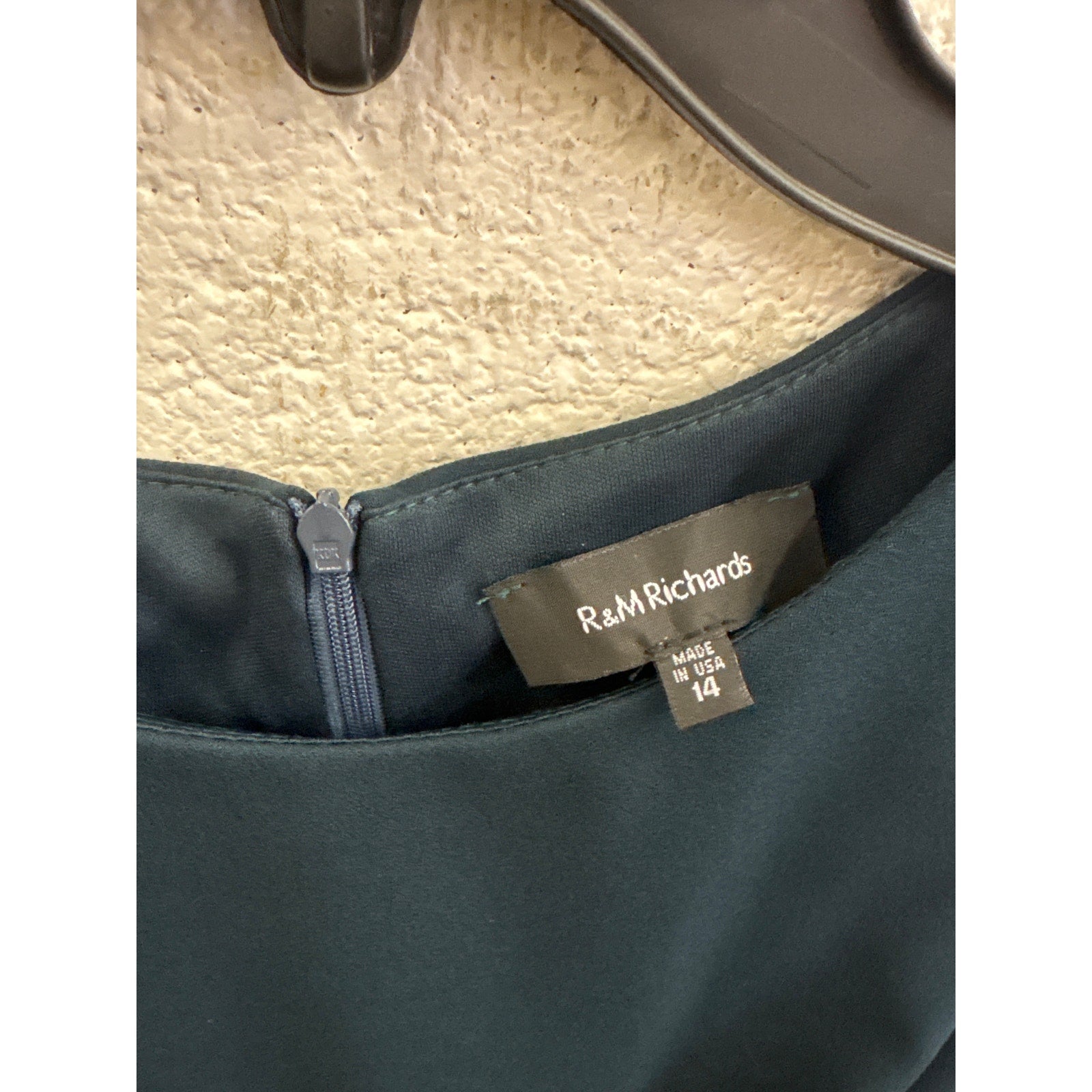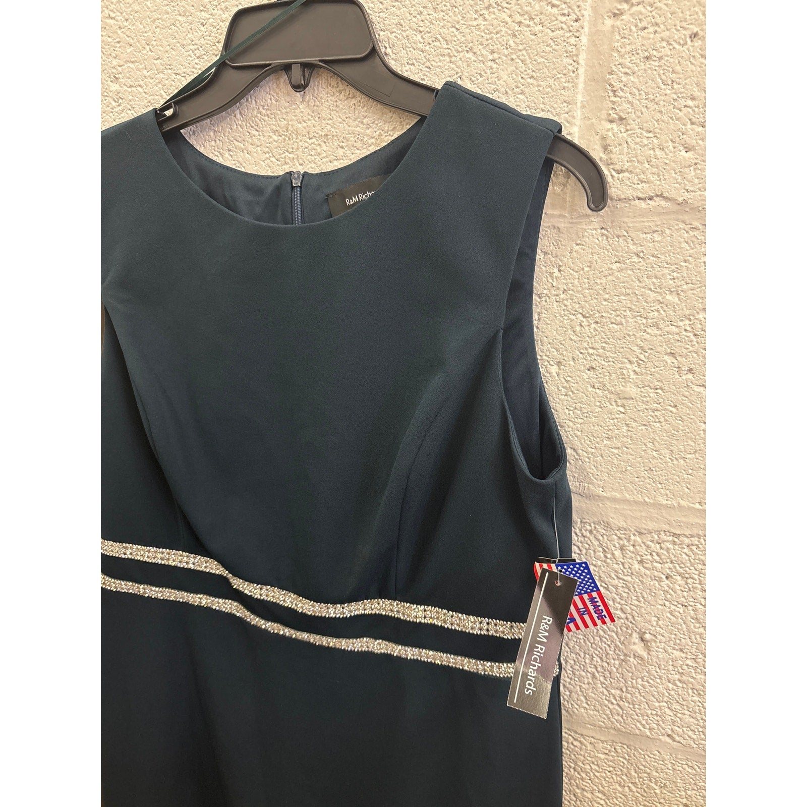 R&M Richards Knee Length Rhinestone Cocktail Dress w Bottom Ruffle Green Sz 14