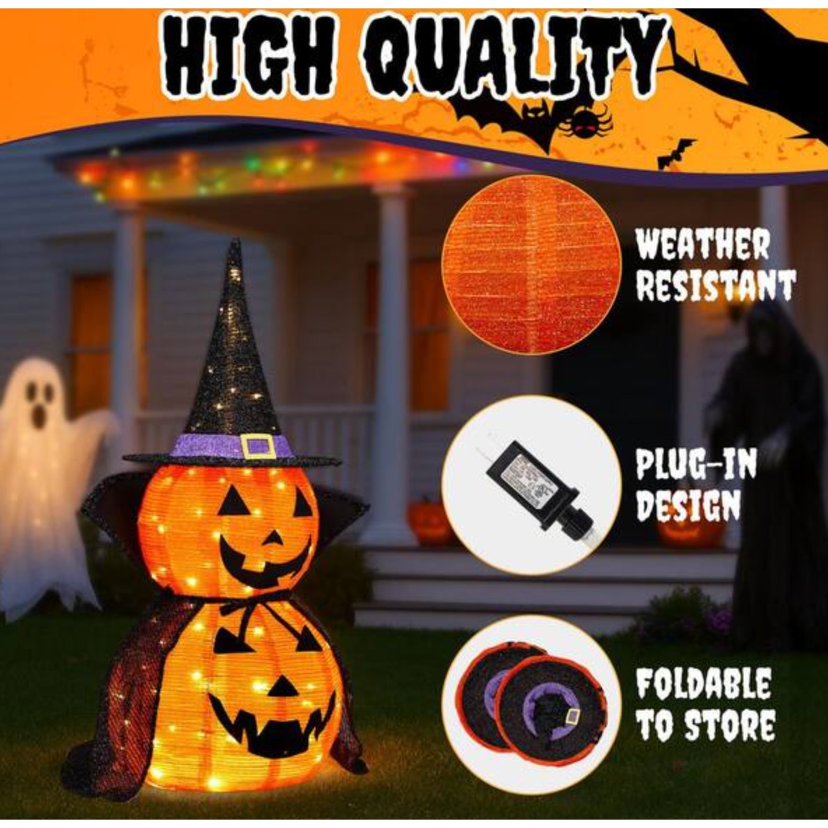 Versatile Indoor & Outdoor Use: Ideal for porches, patios, gardens, lawns, or indoor party spaces, creating a fun and festive Halloween atmosphere anywhere.