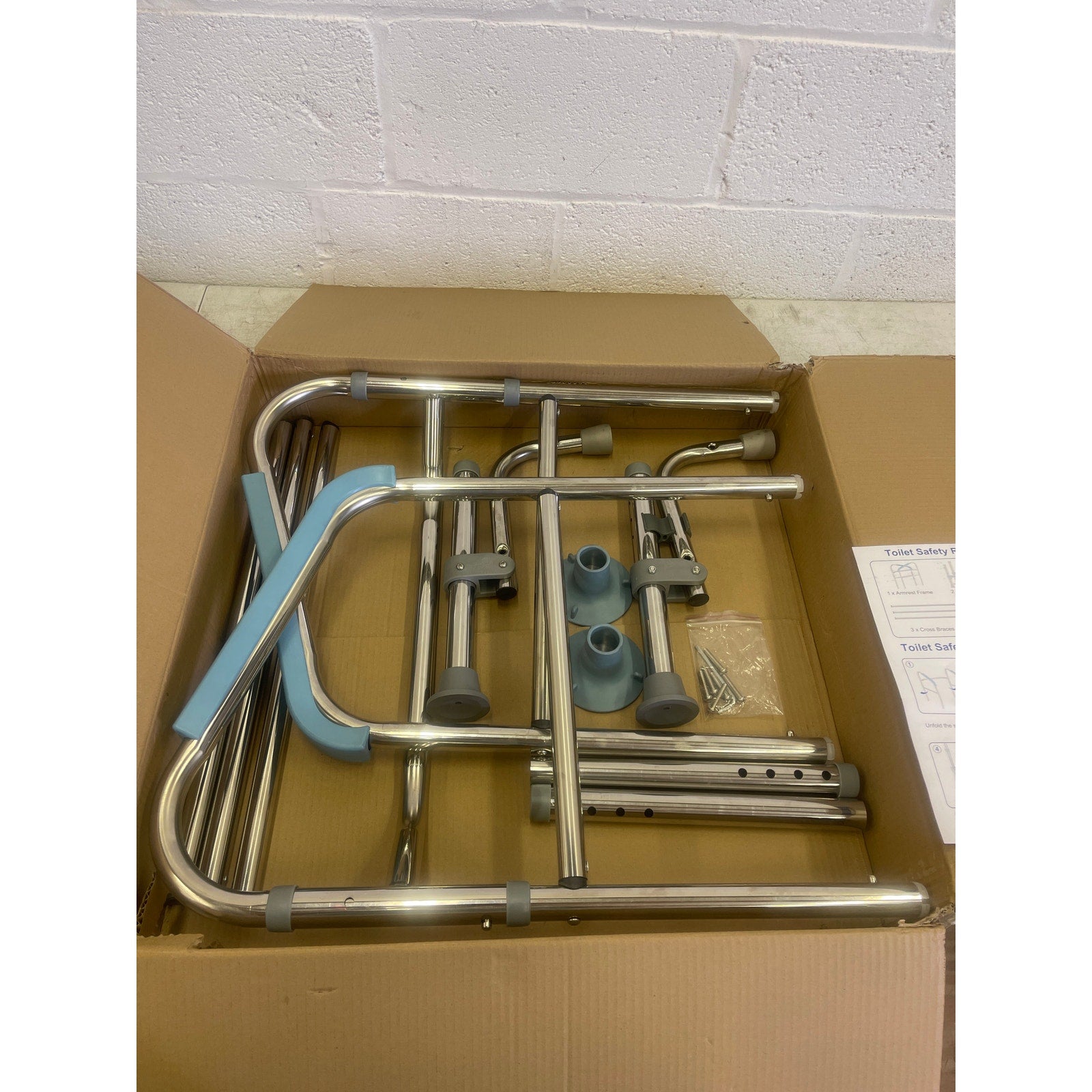 Toilet Safety Rail w Foot Rest Height Adjustable 400LB Steel Foldable & Portable