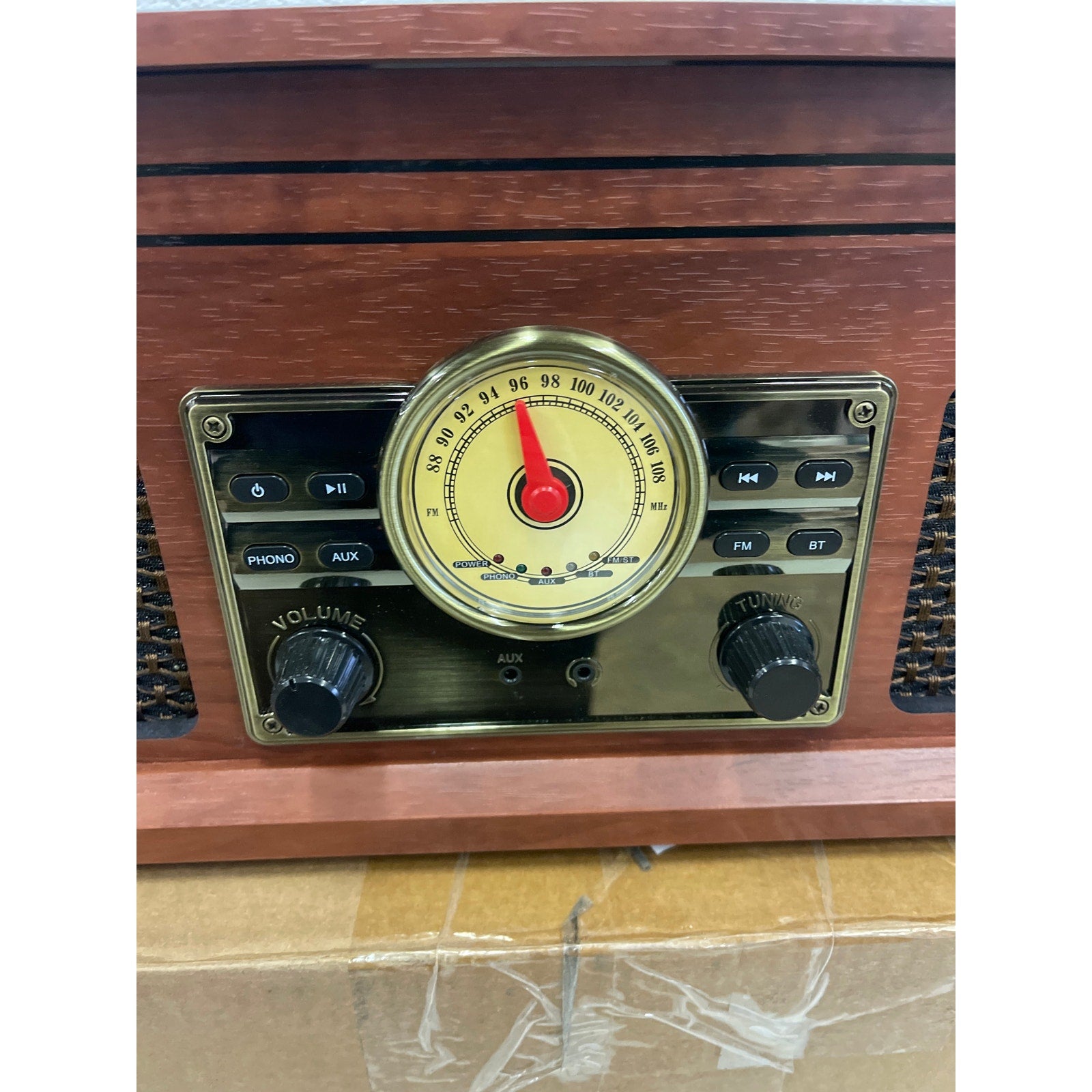 Victrola Lawrence 4-in-1 Bluetooth Record Player, Radio, Turntable, Wood Finish