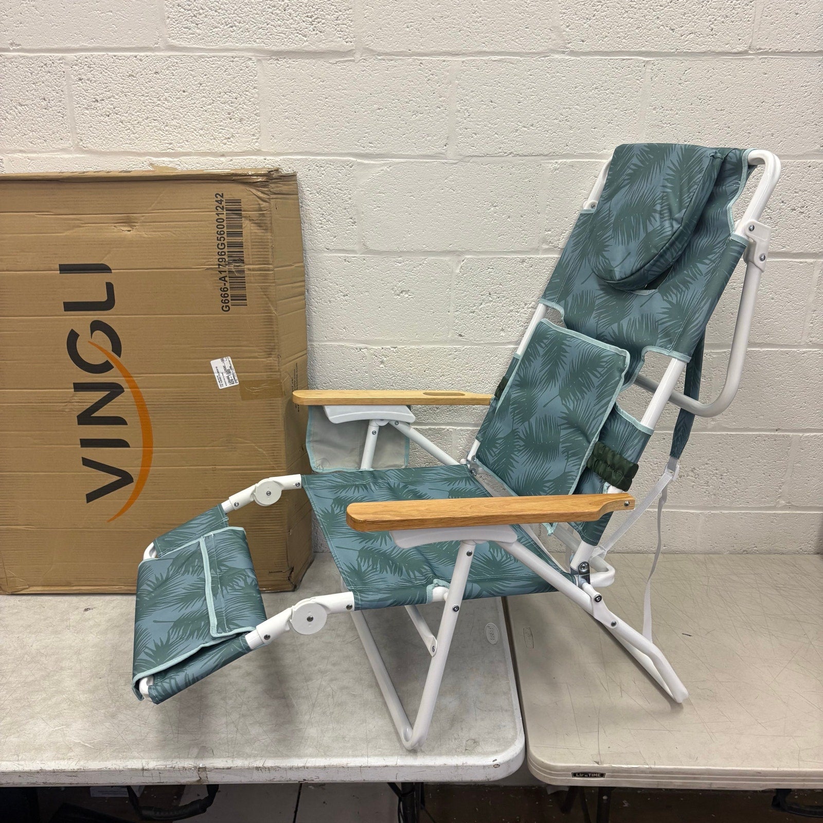 VINGLI 3-in-1 Beach Chair Portable Reclining Lounge Foot Rest & Face Hole, Green