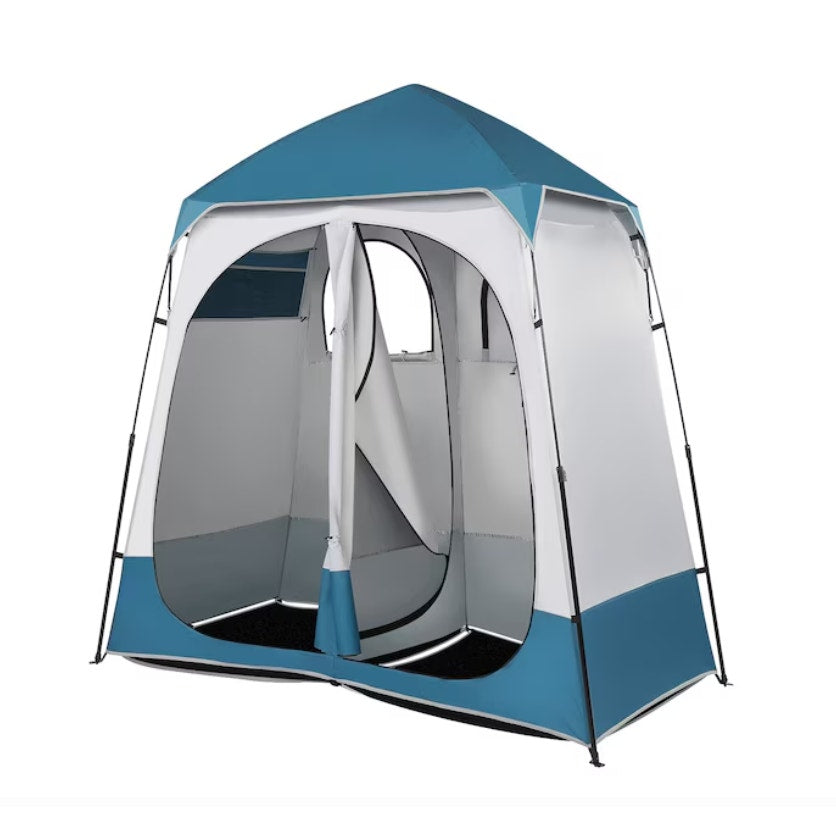 VINGLI 7.5ft Pop Up 2-Room Shower Tent with Mesh Floor and Carrying Bag - Blue