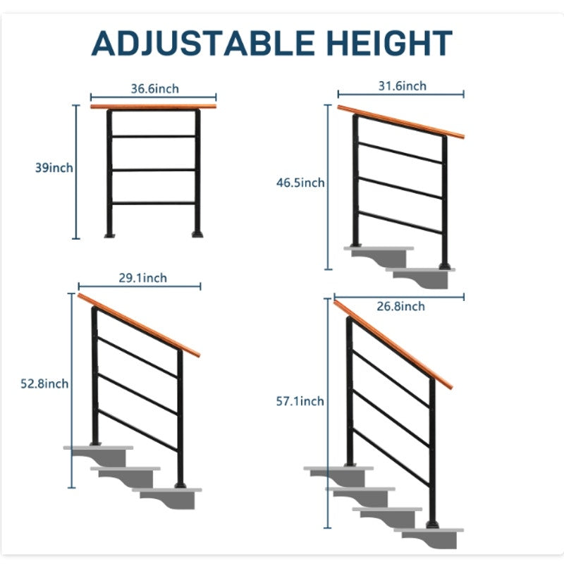 Wooden Handrail for Stairs Fits 1-3 Step Stair Railing Handrail for Outdoor Step