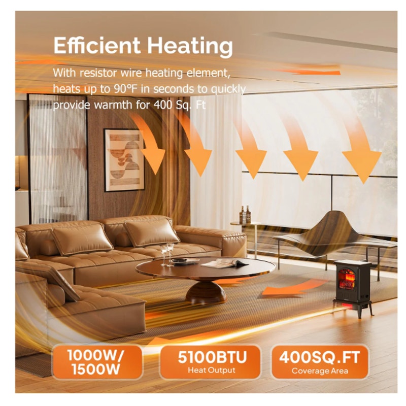 Zokop 1500W Electric Heater Space Heater Fireplace Stove Heater, SEE DETAILS