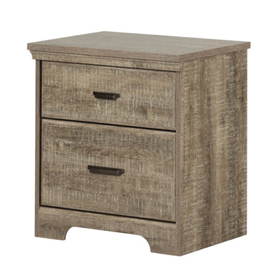 South Shore Versa 2-Drawer Nightstand - End Table with Storage, Weathered Oak