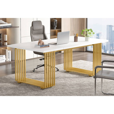 Tribesigns 70.9" Executive Desk Office Computer Desk Conference Table White/Gold