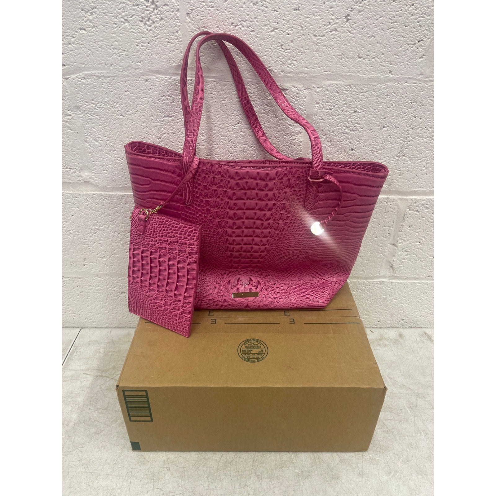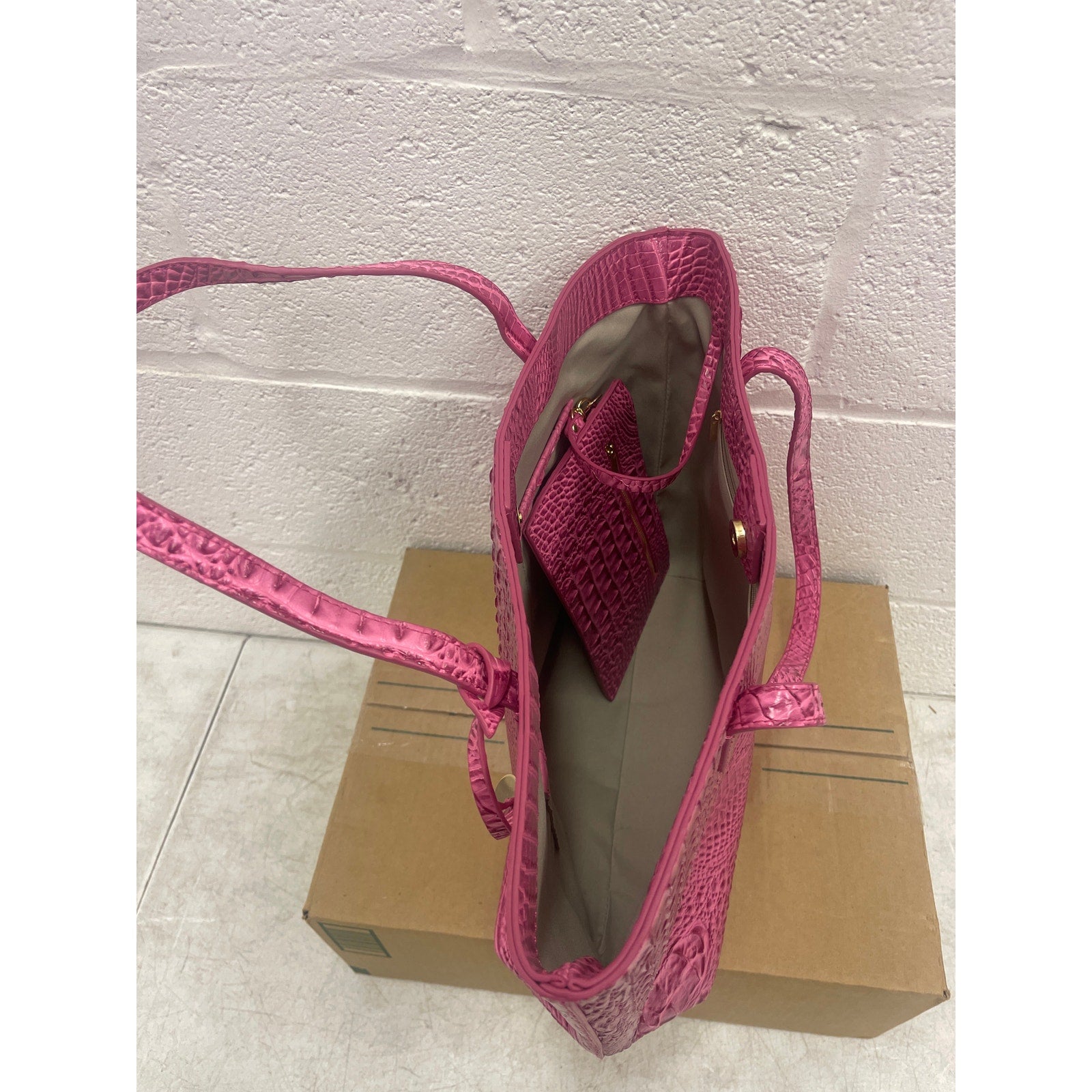 Pink Leather Tote Bag Leather Handbags for Women Top Handle with Purse - Pink