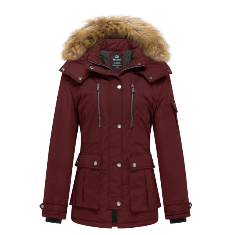 Wantdo Women's Winter Coat Warm Winter Jacket Hooded Puffer Parka Jacket 2X Red