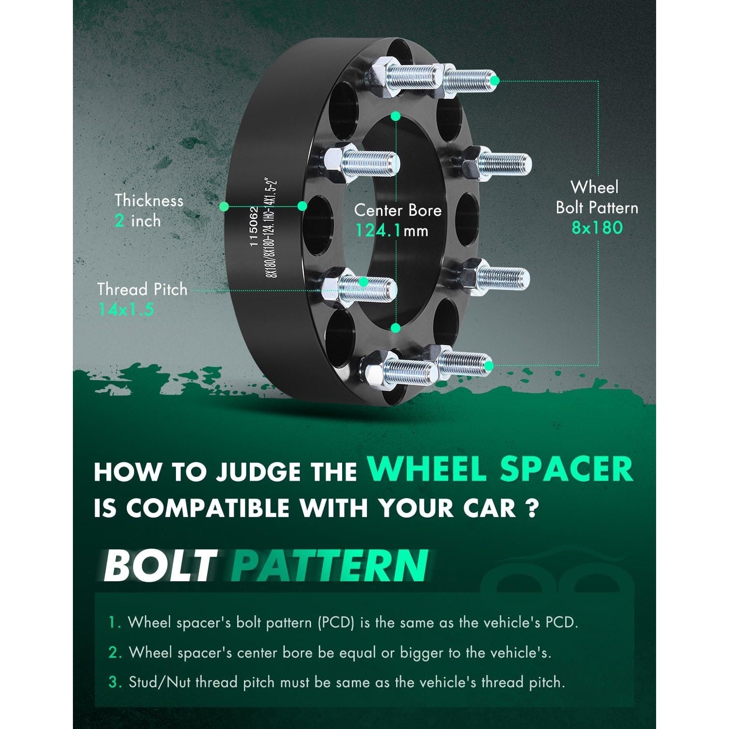 Set-of-2 Wheel Spacers 2" 8x180 Bore 124.1mm Studs 14x1.5 8 Lug (115062)