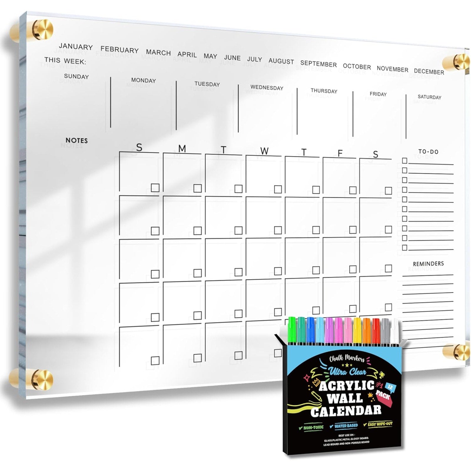 Reusable & Sustainable: Reduce waste with our dry-erase acrylic calendar, designed for repeated use-just write, erase, and plan again!