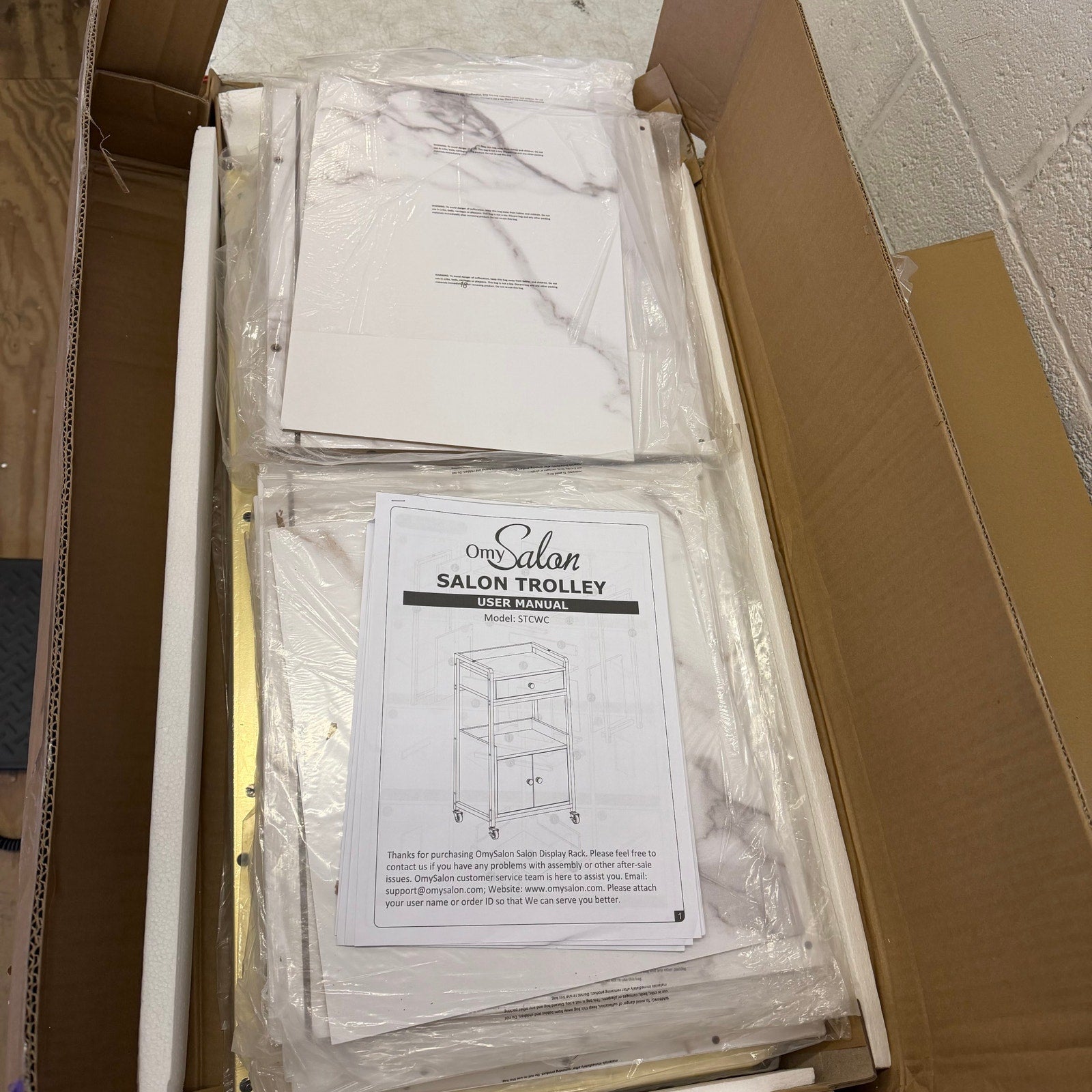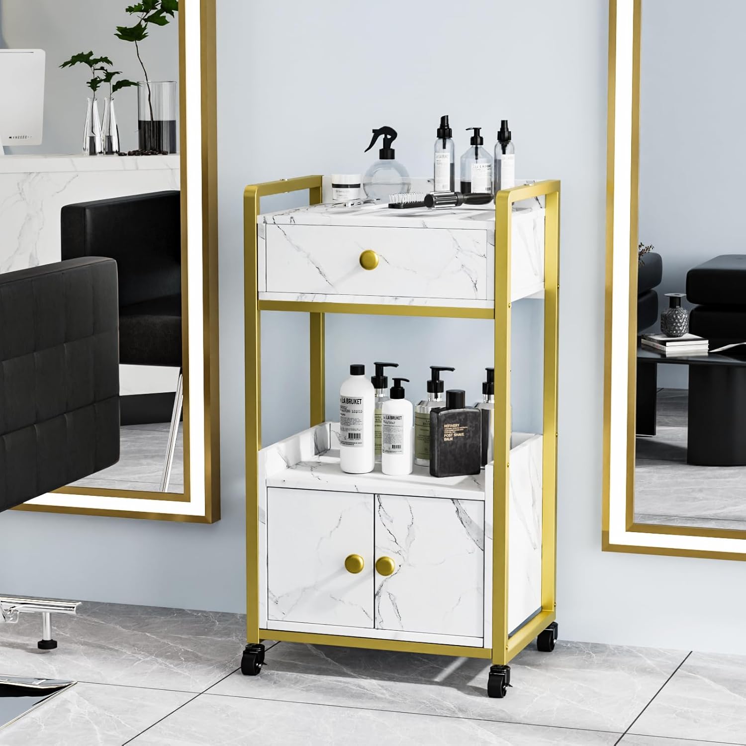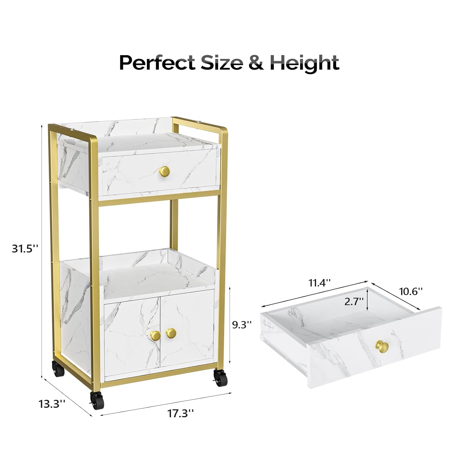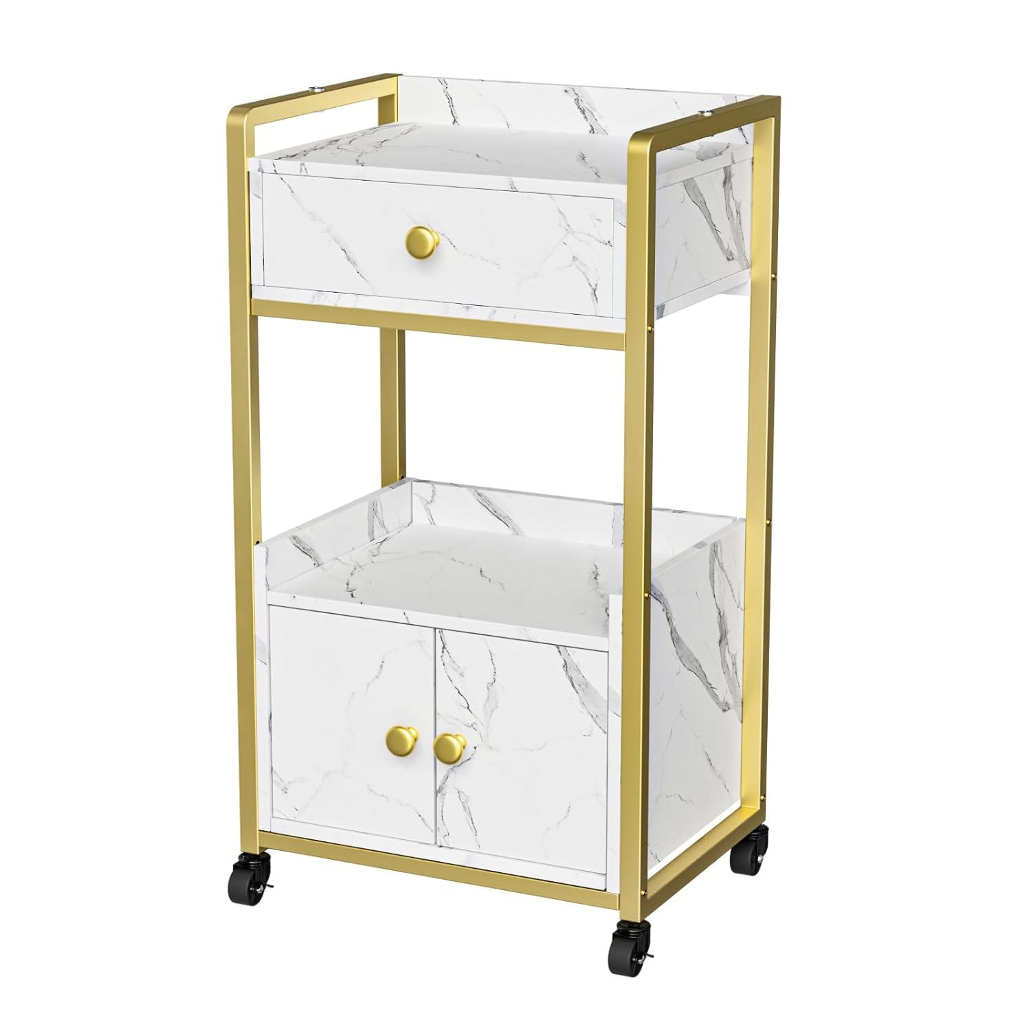 OmySalon Rolling Utility Esthetician Trolley Cart with Wheels, Drawer & Cabinet