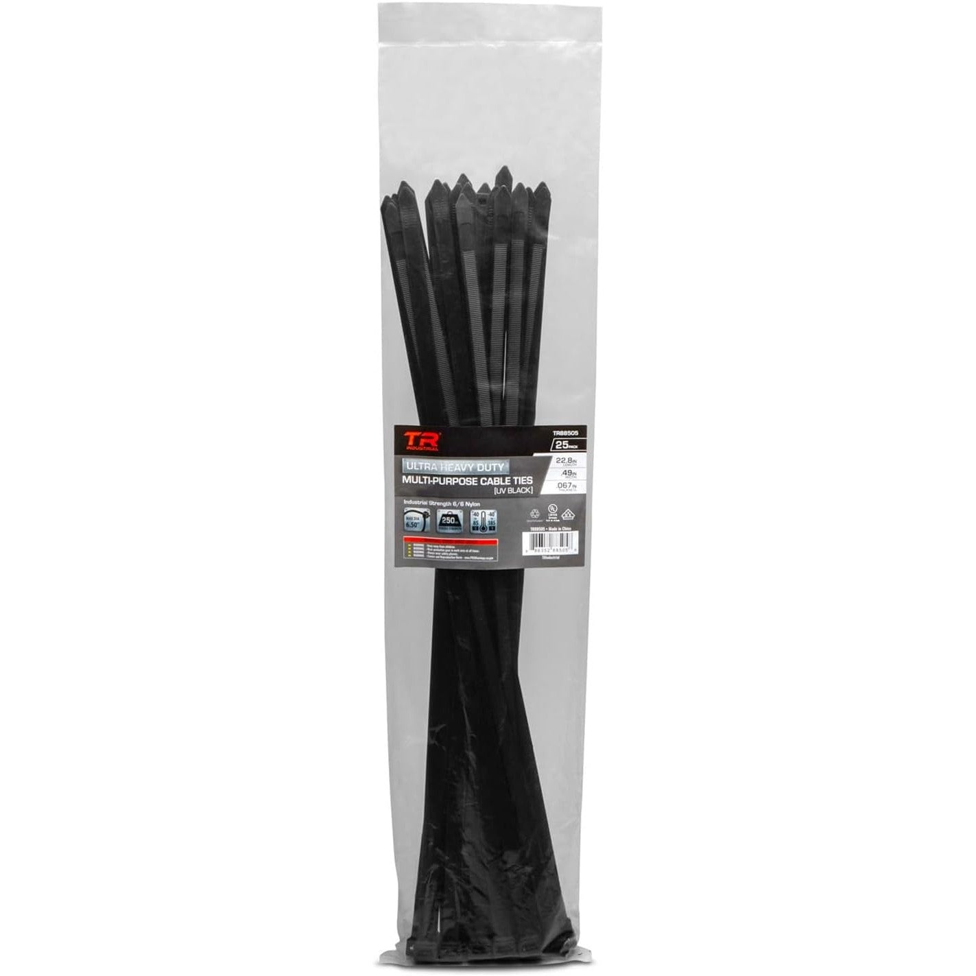 TR Industrial Ultra Heavy Duty Multi-Purpose UV Cable Ties, 22.8", 25pk - Black