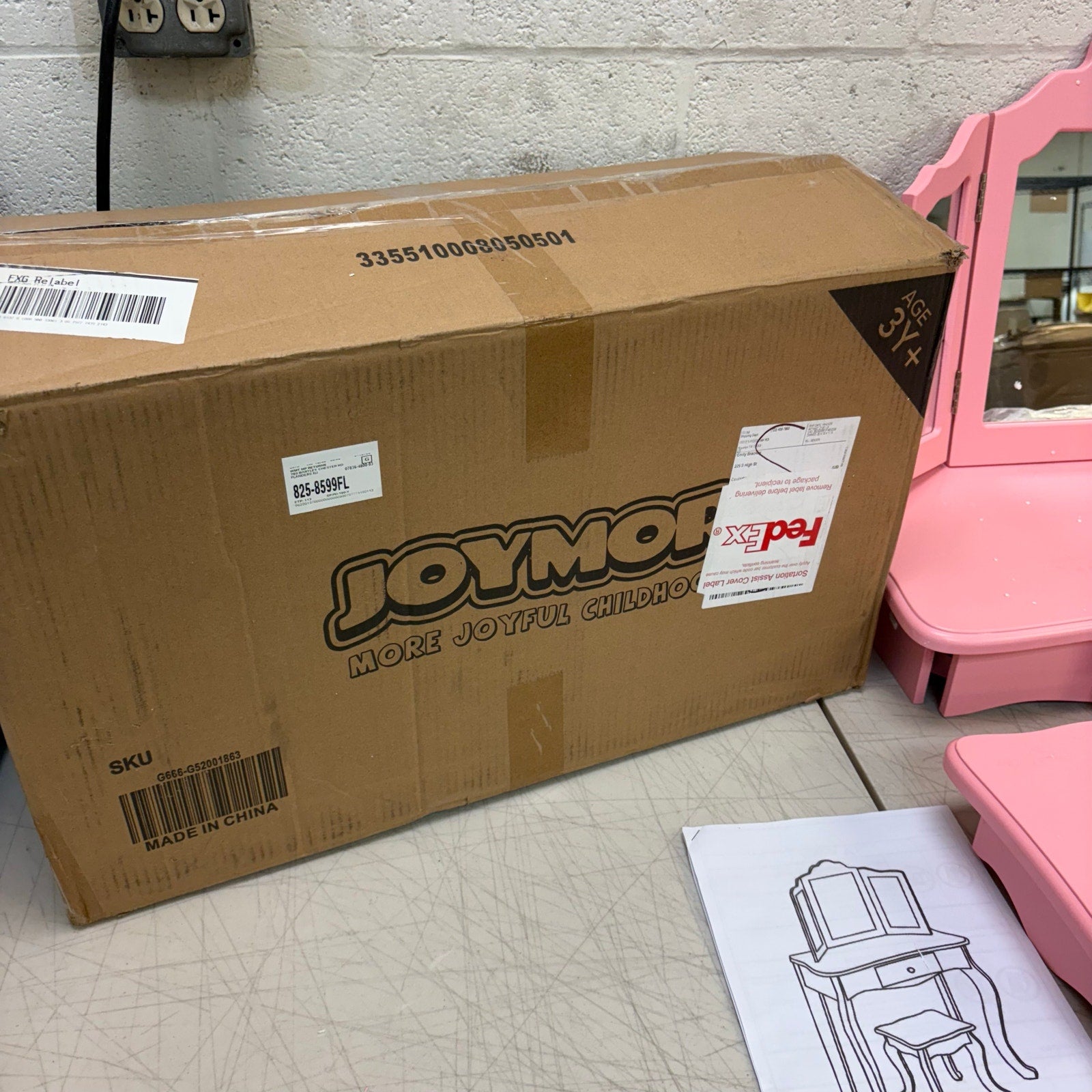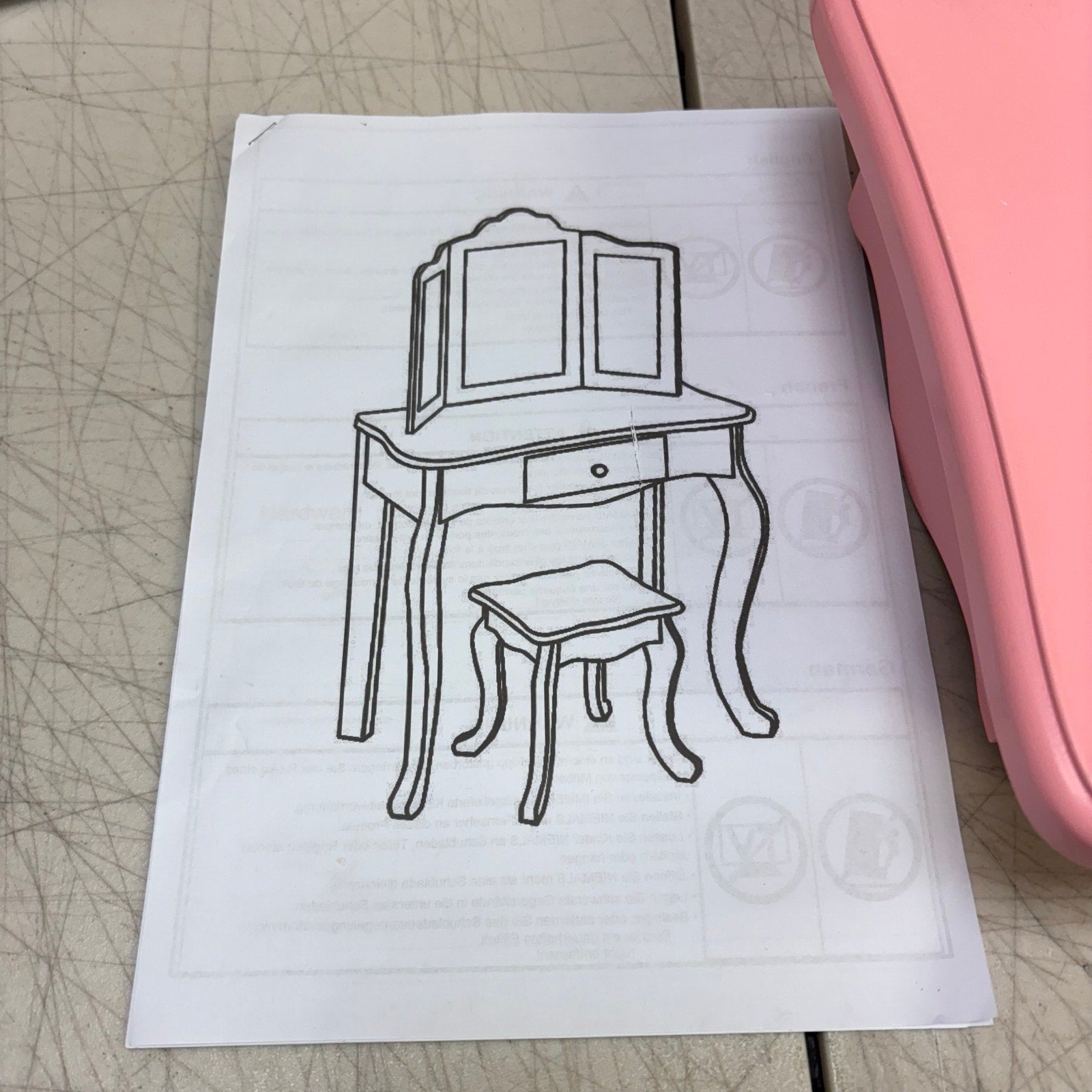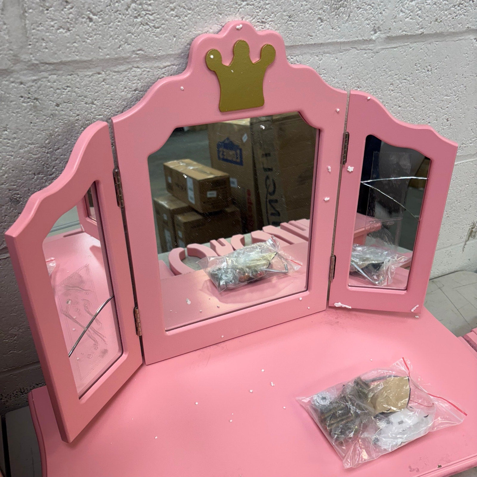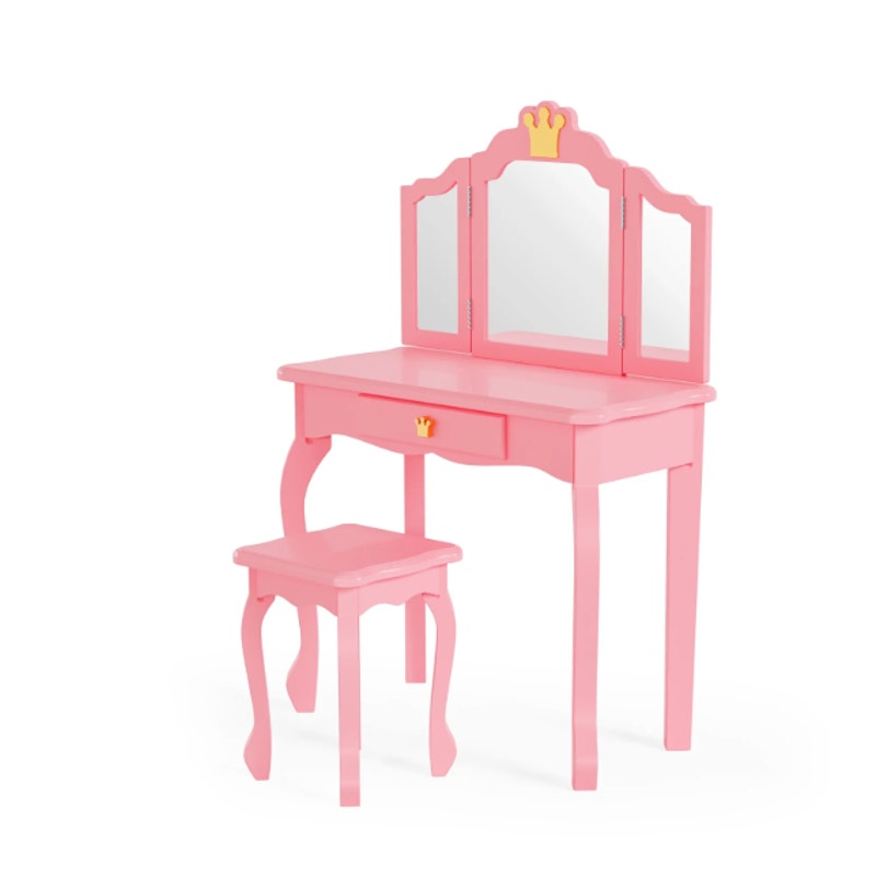 JOYMOR Kids' Vanity Table & Stool Makeup Dressing Set w/ Mirrors & Drawer, Pink, DAMAGED