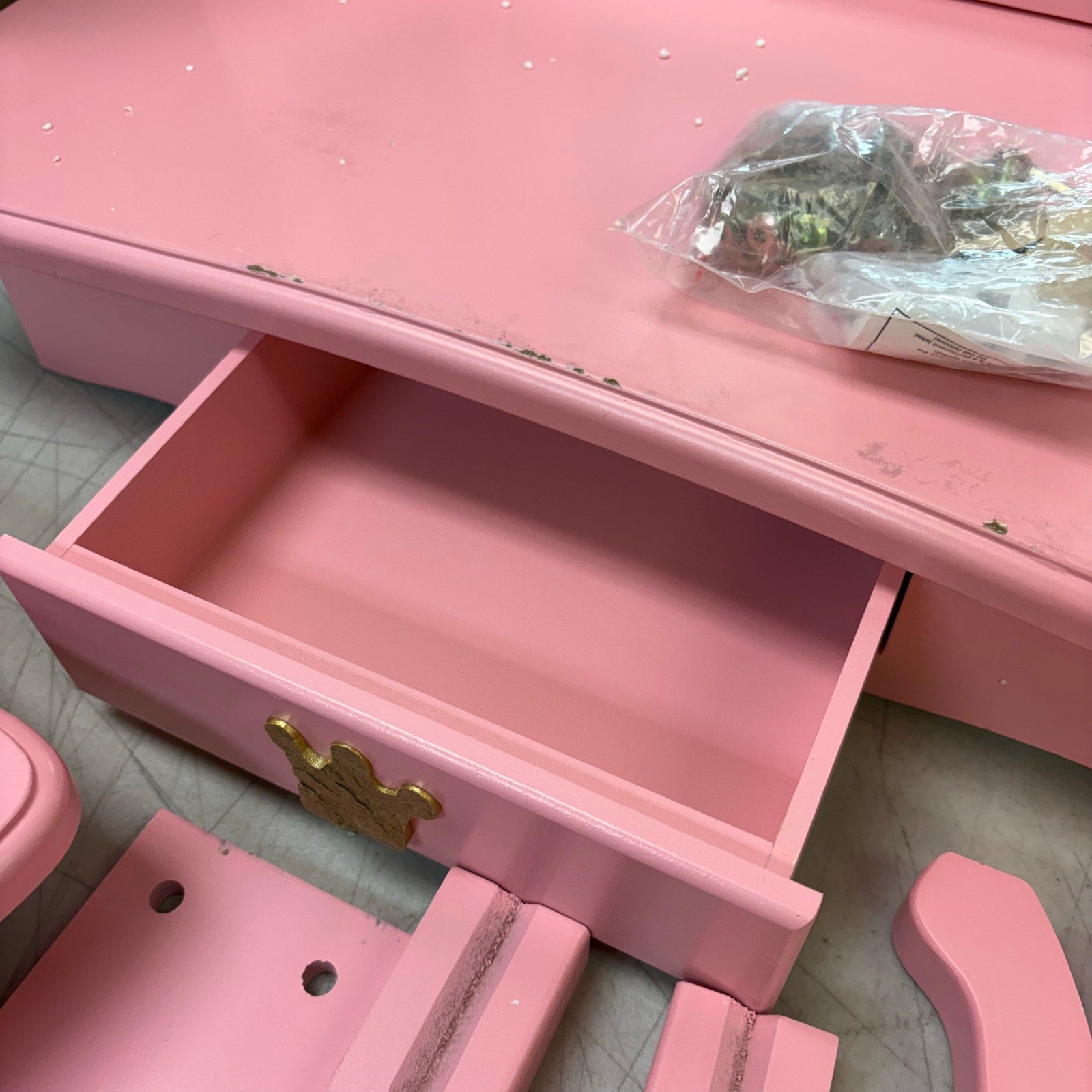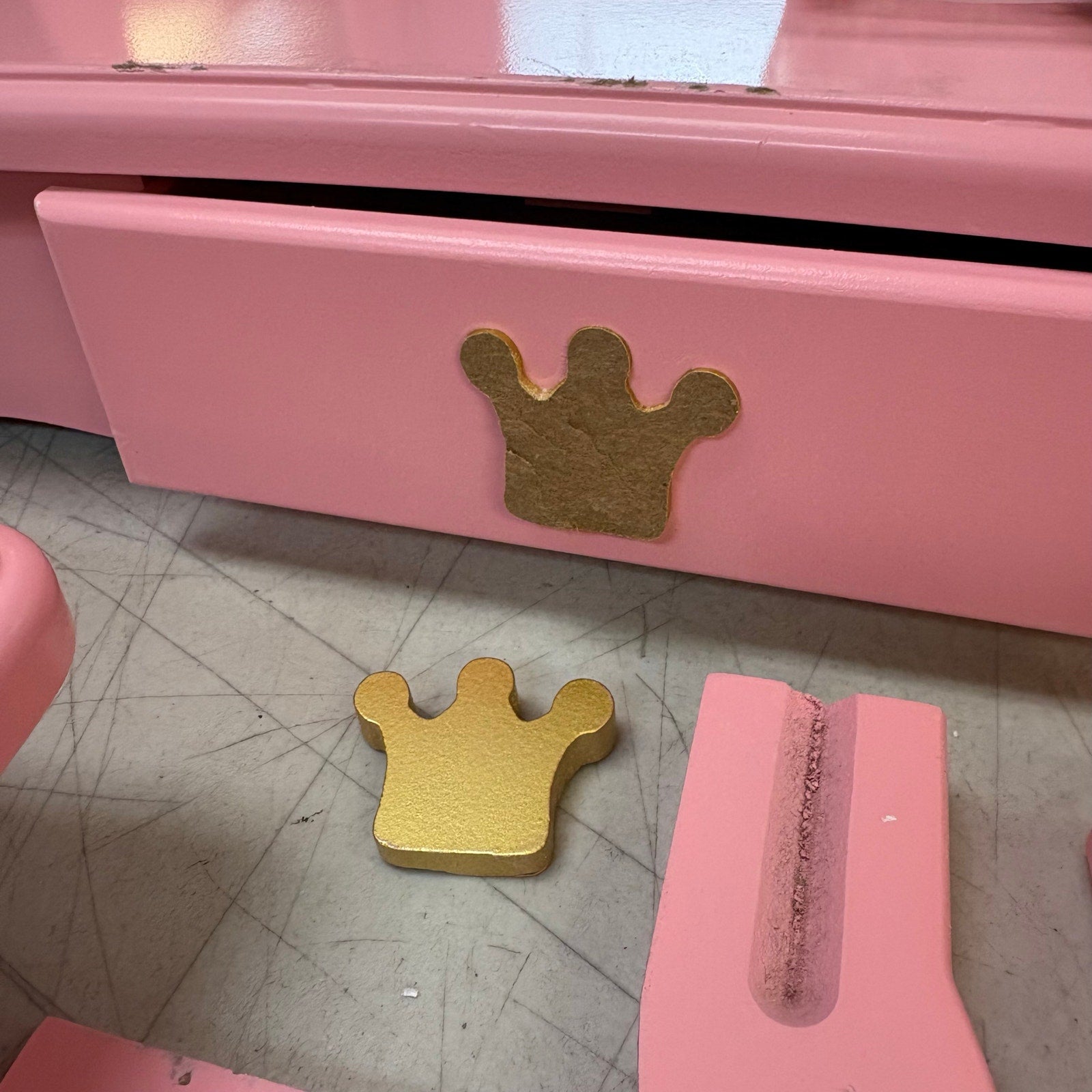 Condition: Pre Owned minor marks - Mirror is cracked - Crown symbol on drawer is split in half.