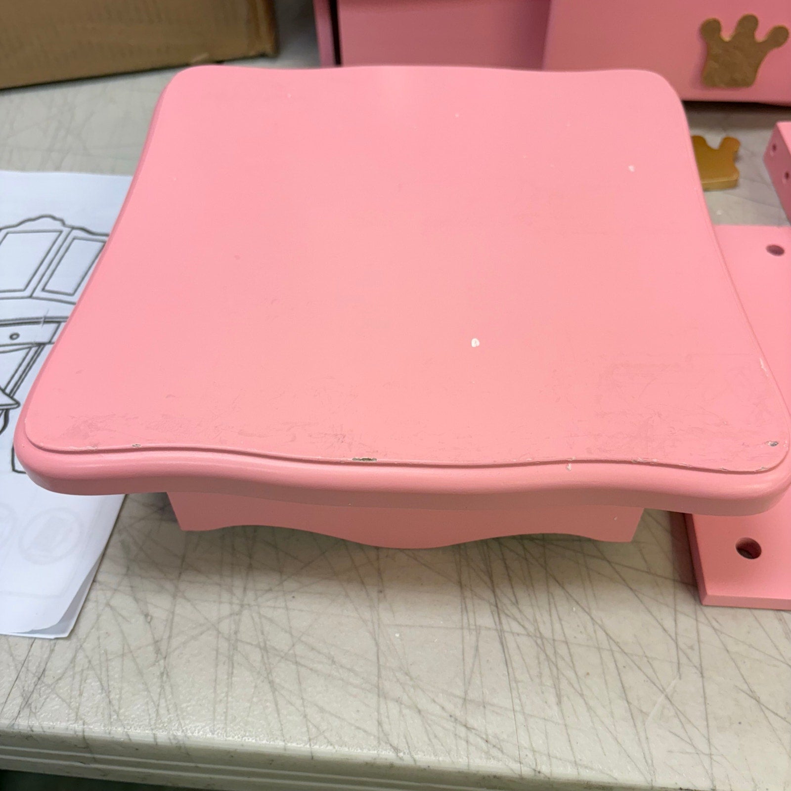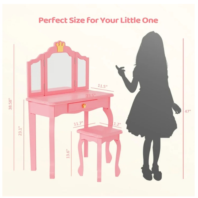 Child-Sized Design: The pink vanity and stool are perfectly sized for children, featuring rounded corners.